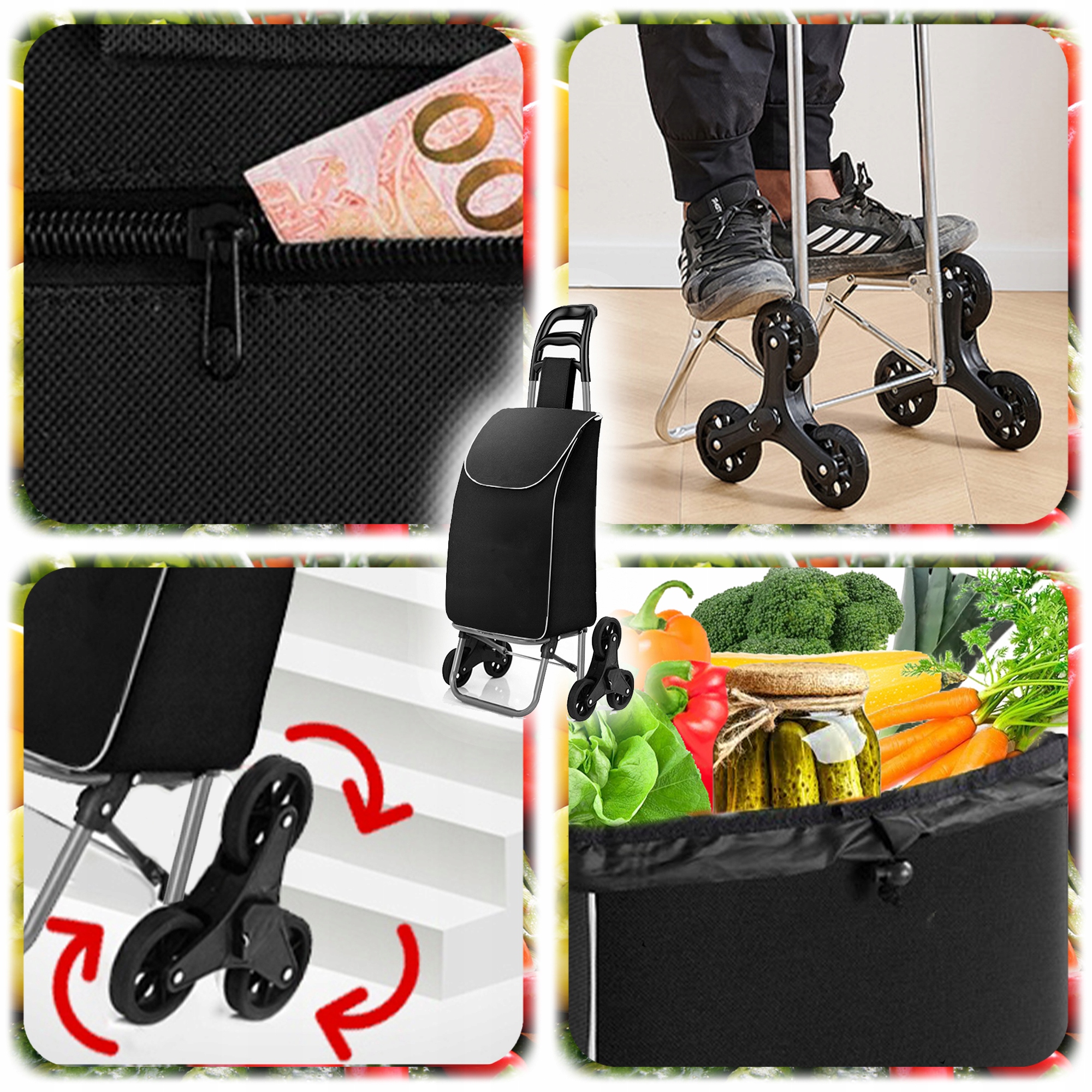 Втомилися носити важкі покупки? Вам важко підніматися сходами з сумками? Цей Візок для покупок на колесах з функцією сходів - це не тільки практичне, але й стильне рішення, яке полегшить виконання повсякденних обов'язків кожному - як пенсіонерам, так і активним людям.