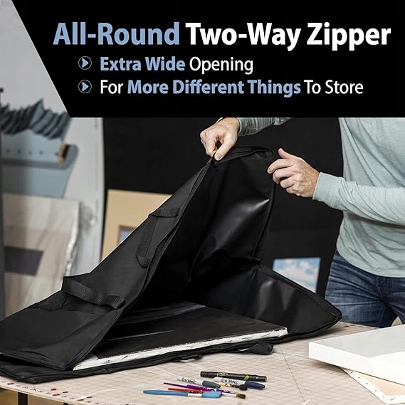 - Наповніть свою сумку на портоліо простіше, ніж раніше ! Перше, що ви помічаєте в сумці рукава, -це двосторонній замок навколо нього! Це дозволяє легко відкрити сумку і вкласти в неї свою цінну роботу, не турбуючись про їхню шкоду. Сумка може безпечно лежати на землі або столі, і ви покладете те, що хочете. Її ефективність ще більше зміцнилася, щоб вона могла перемістити навіть найважчі предмети. Ви можете покласти предмети із загальною вагою до 68 кг! Це просто міцна сумка портфоліо! Хоча мішки великі, їх можна легко скласти, щоб вони не займали занадто багато місця в шафі. Виготовлення тканини 600D з Оксфорда з Оксфорда не забезпечує повну водонепроникну, але гарантує стійкість до дощу або пролиту кавою. Якщо ситуація вимагає цього, ви можете легко мити сумку, щоб через деякий час це було як нове. Звичайно, його головна мета - зберігати зображення та малюнки, але насправді ця сумка - це щось більше! Ви можете перемістити телевізор, сонячну панель, монітор, ноутбук, книги та багато, багато іншого! Його функціональність може навіть допомогти вам у наступному кроці.