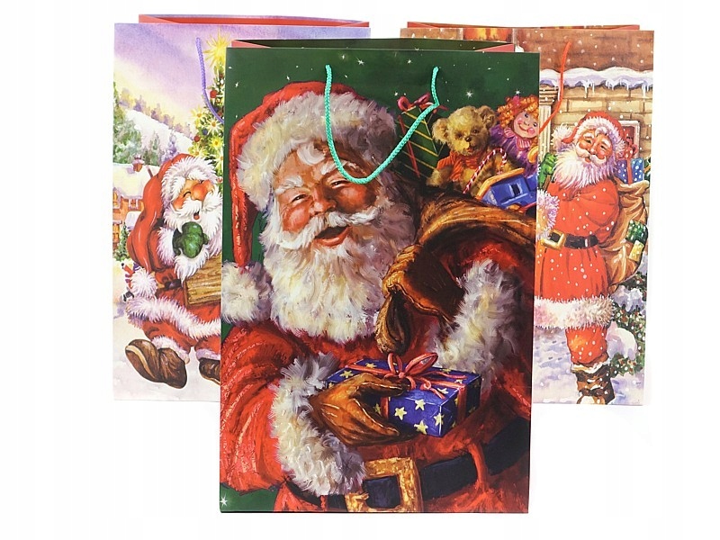 сумки, виготовлені з ламінованого паперу з різдвяними мотивами.
