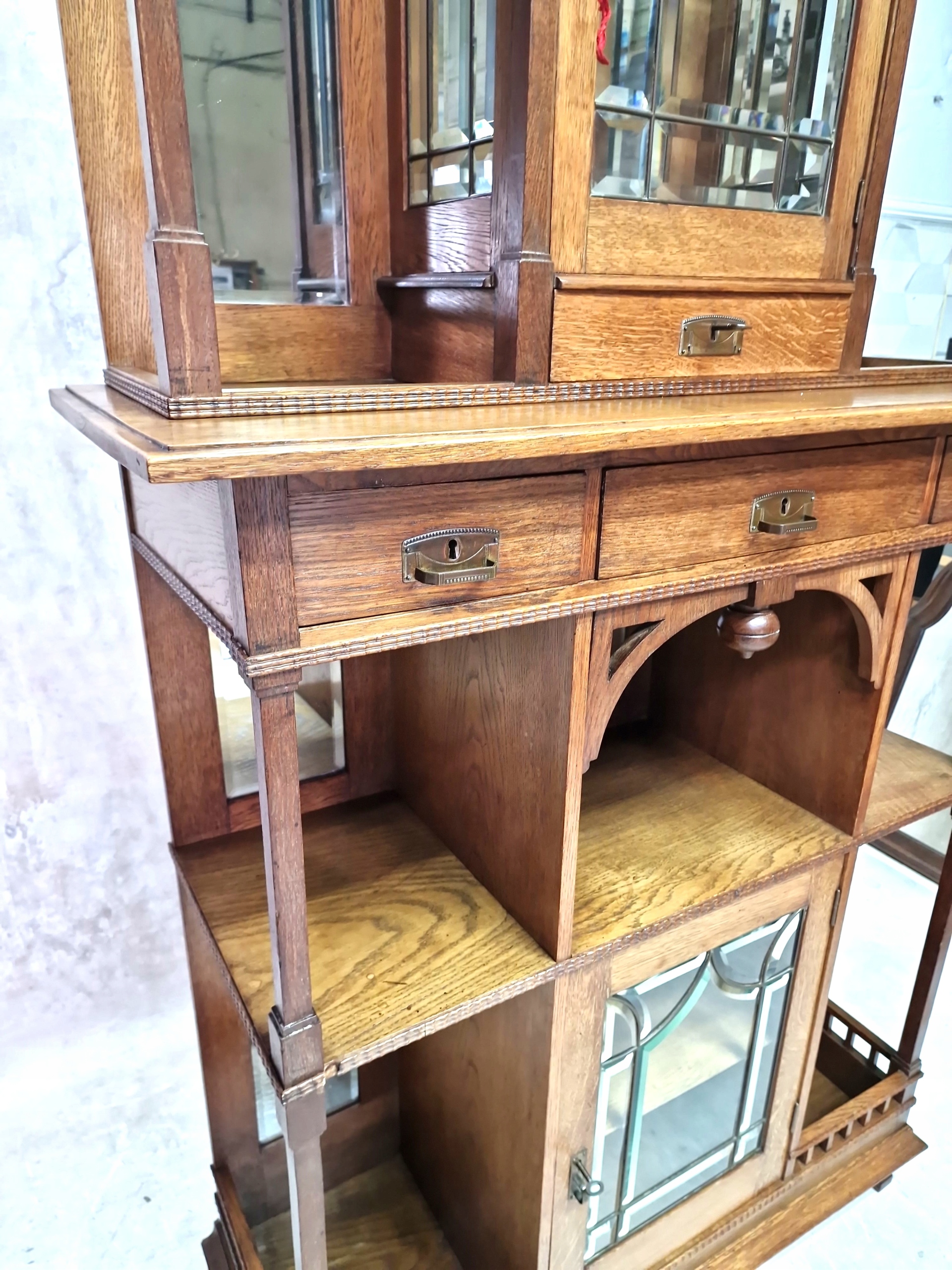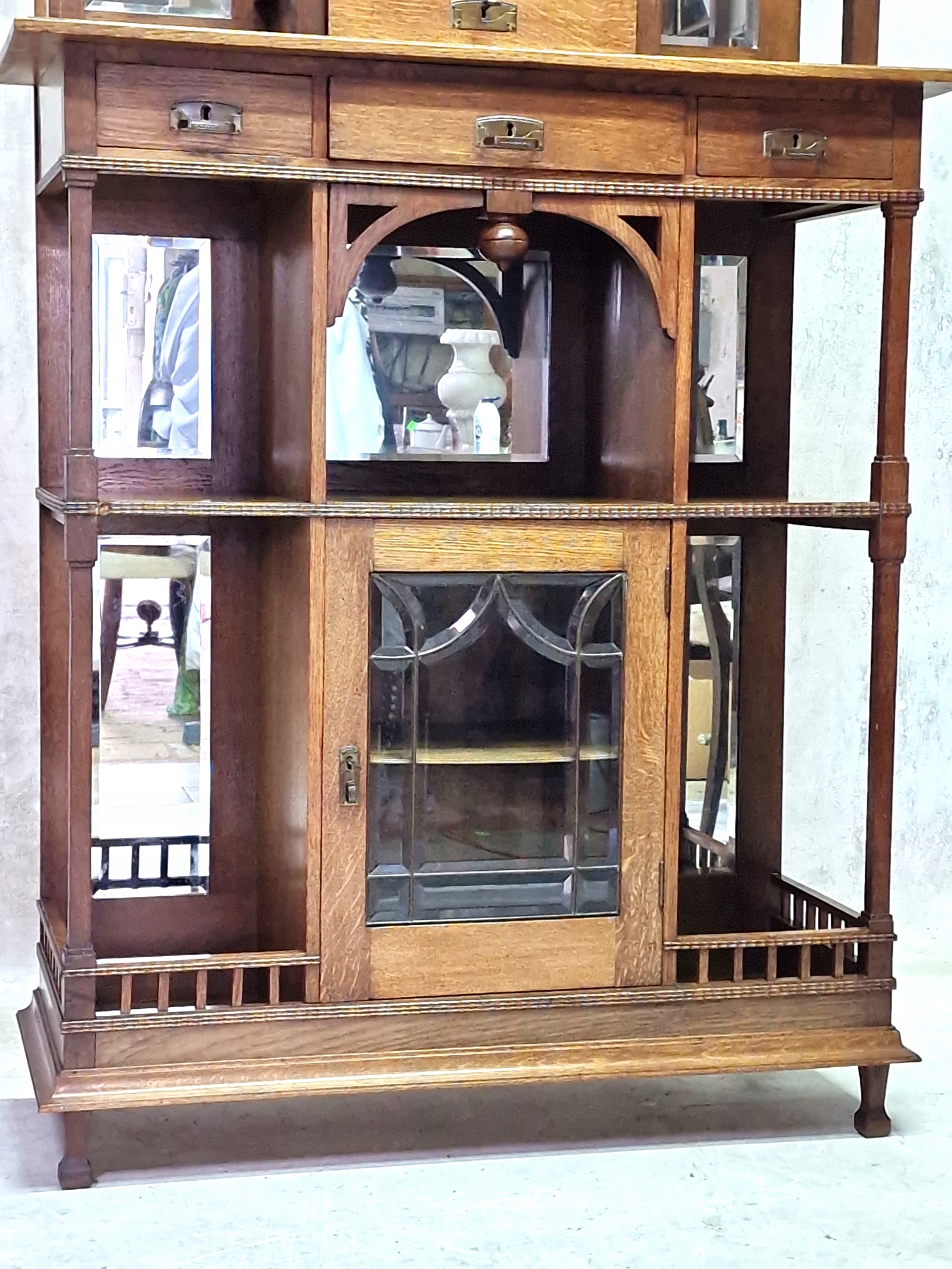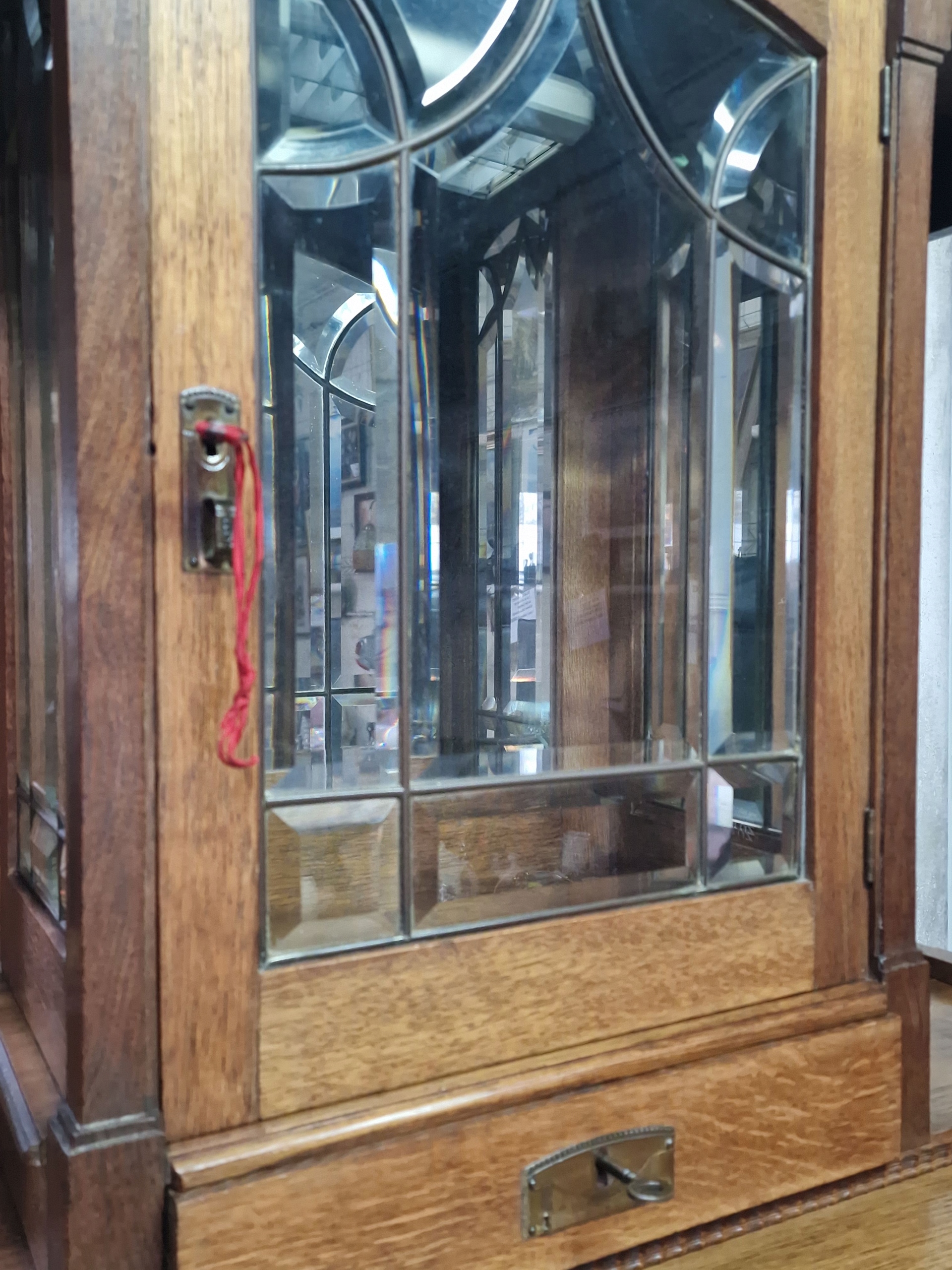 Шафа-вітрина з дуба середнього кольору, прикрашена тонким різьбленням