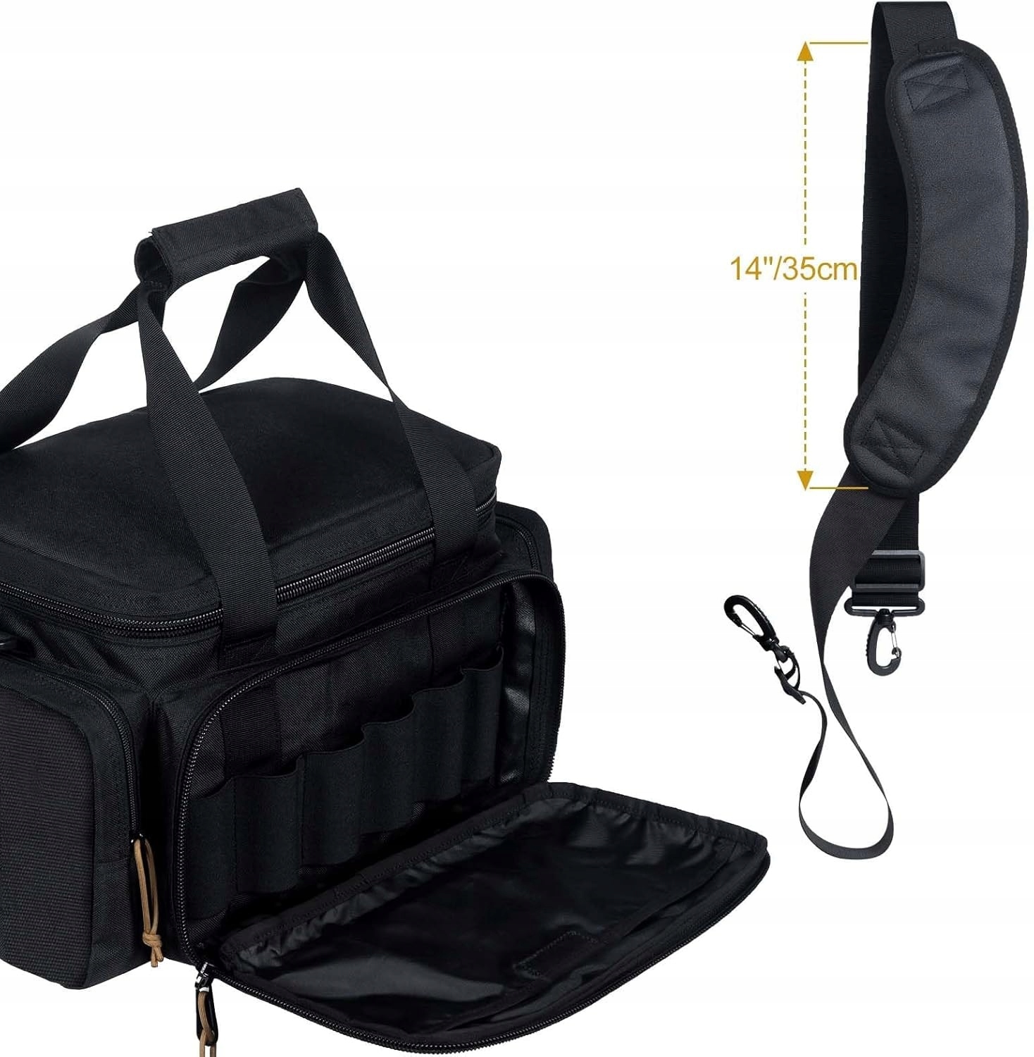 Сумка виготовлена з надзвичайно суцільного матеріалу 1000d поліестеру , що гарантує стійкість до стирання, погодних умов та інтенсивного використання. Основна та передня кишеня оснащені ykk замками , які ви можете забезпечити замок - для ще більшого миру та безпеки. Сумка до ваших уподобань. Носіння навіть протягом багатьох годин - на стрільбі, полювання або виїзд на поле - це не буде обтяжливим. ✅ Повна свобода руху та зручність на найвищому рівні!
