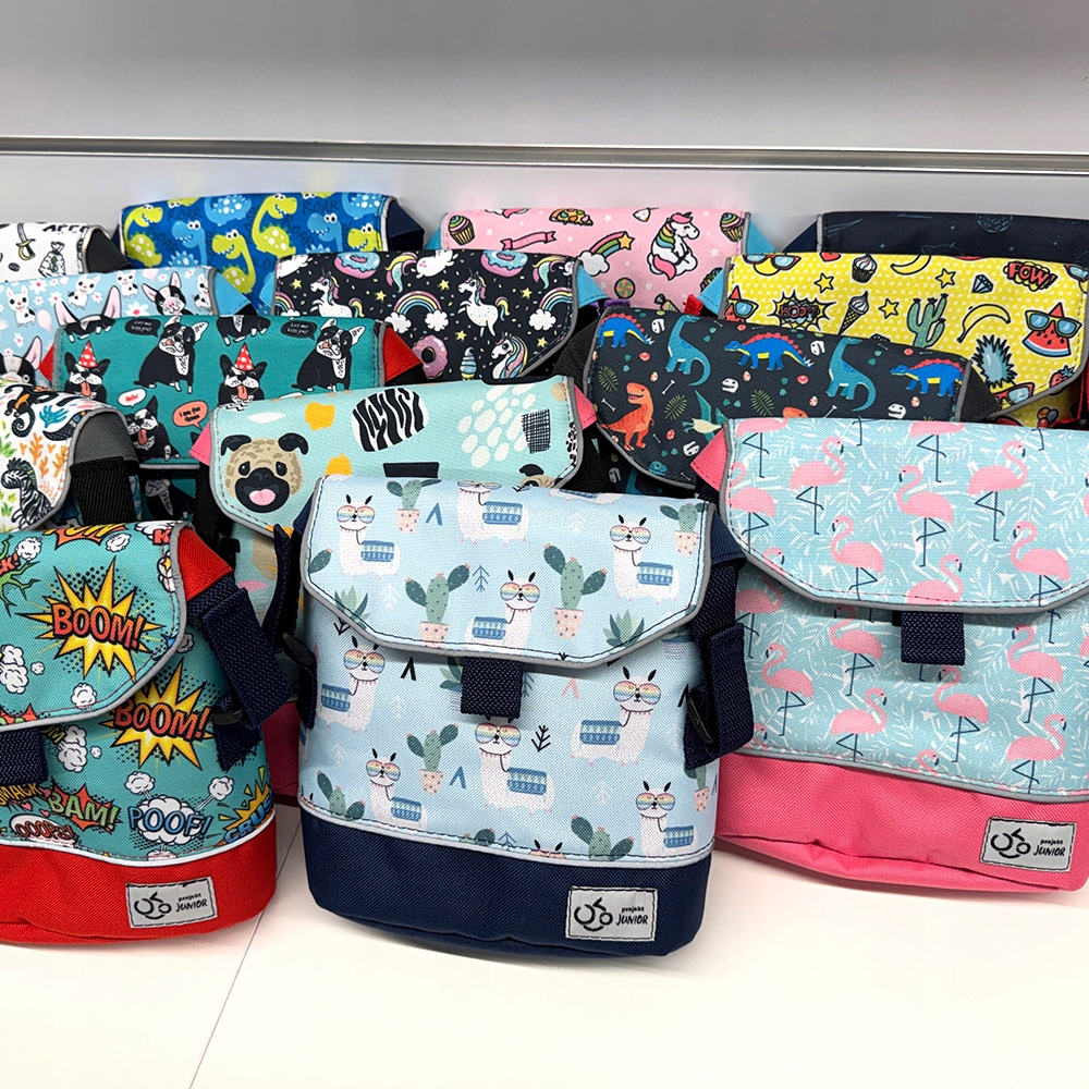 Сумки доступні в широкому асортименті візерунків і кольорів , тож кожна дитина знайде щось для себе. Пропозиція включає як мотиви, навіяні природою та тваринами, так і енергійну сучасну графіку, повну кольорів. Такий вибір робить сумку не тільки практичним аксесуаром, а й улюбленим елементом дитячого велосипеда чи самоката. Незалежно від того, чи віддає перевагу ваш малюк пастельні відтінки чи насичені кольори - він обов'язково знайде візерунок на свій смак.