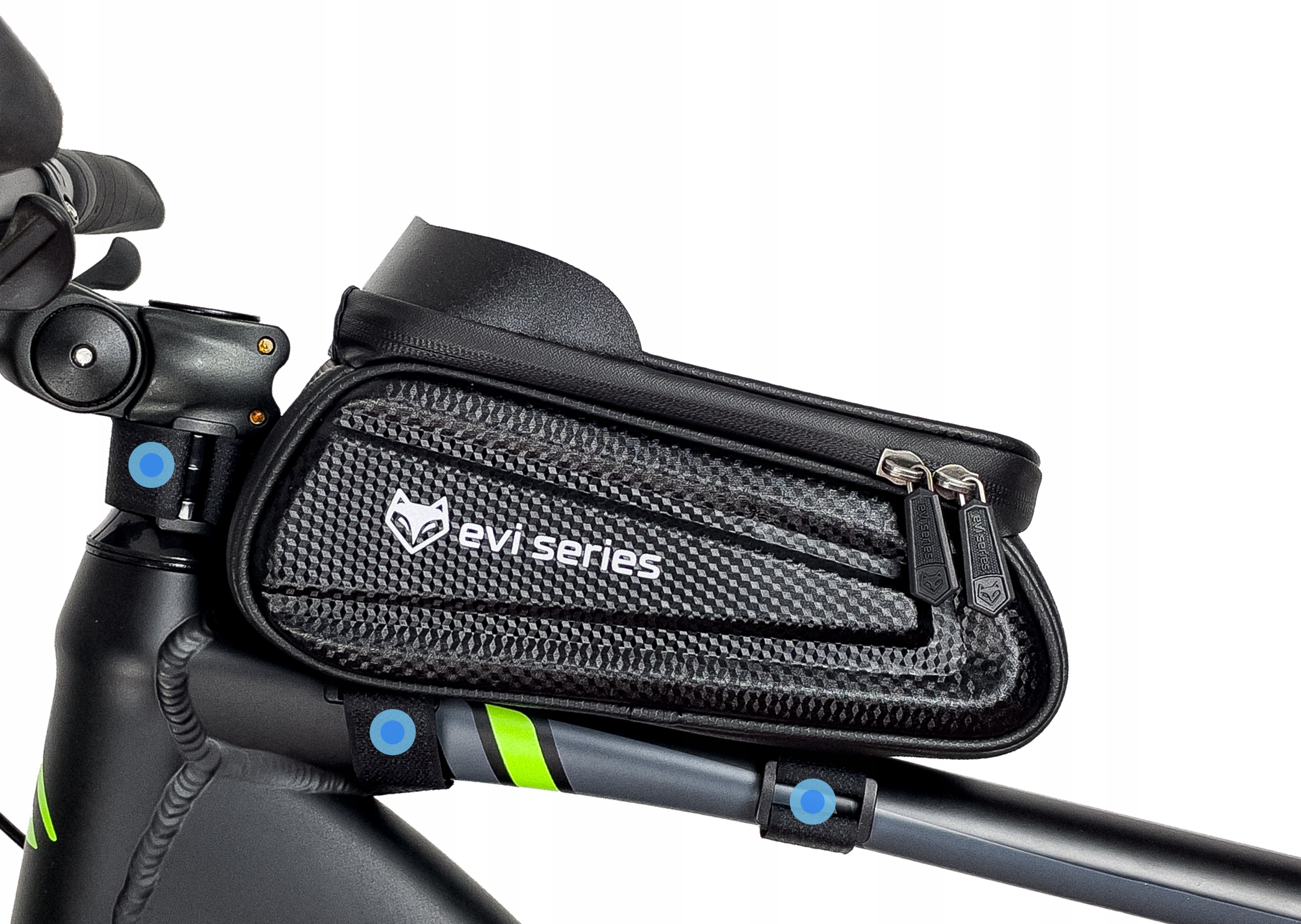 - Кріплення – 3 застібки Velcro для встановлення на раму - Застібки Velcro мають довжину, щоб підійти до будь-якого велосипеда - вирізати їх після встановлення відповідно до ваших потреб
