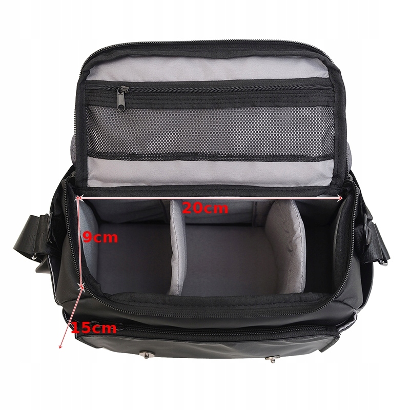 Компактна фотографічна сумка - це чудовий вибір для тих, кому потрібно перемістити основний набір фотографічного обладнання. Ви можете безпечно зберігати його в ньому дзеркальну камеру зі стандартним об'єктивом, додатковим об'єктивом або спалахом та іншими необхідними аксесуарами. Сумка не тільки надзвичайно зручна, але й забезпечує високий рівень захисту для вашого обладнання. Він оснащений основною камерою, передньою та задньою кишені, двома бічними кишенями. Сумка характеризується унікальною, тісною конструкцією, має закритий клапоть двома засувками, що гарантує швидкий доступ до внутрішньої сторони.