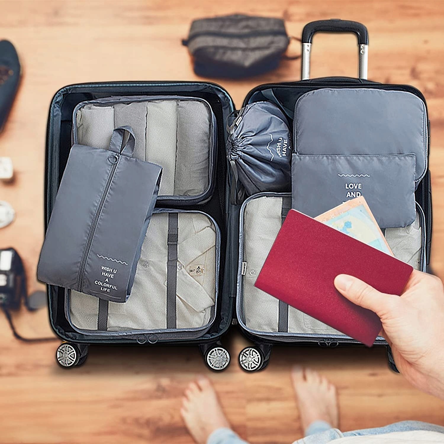 Ця сумки для організаторів валізи ідеально підходить для ділових поїздок, сімейних канікул, плавання, катання на човнах, катання на лижах, кемпінгу та інших заходів на відкритому повітрі. Великий внутрішній об'єм для всього вашого подорожей, взуття, макіяжу, аксесуарів для гоління тощо, робить упаковку та розпакування вітру.