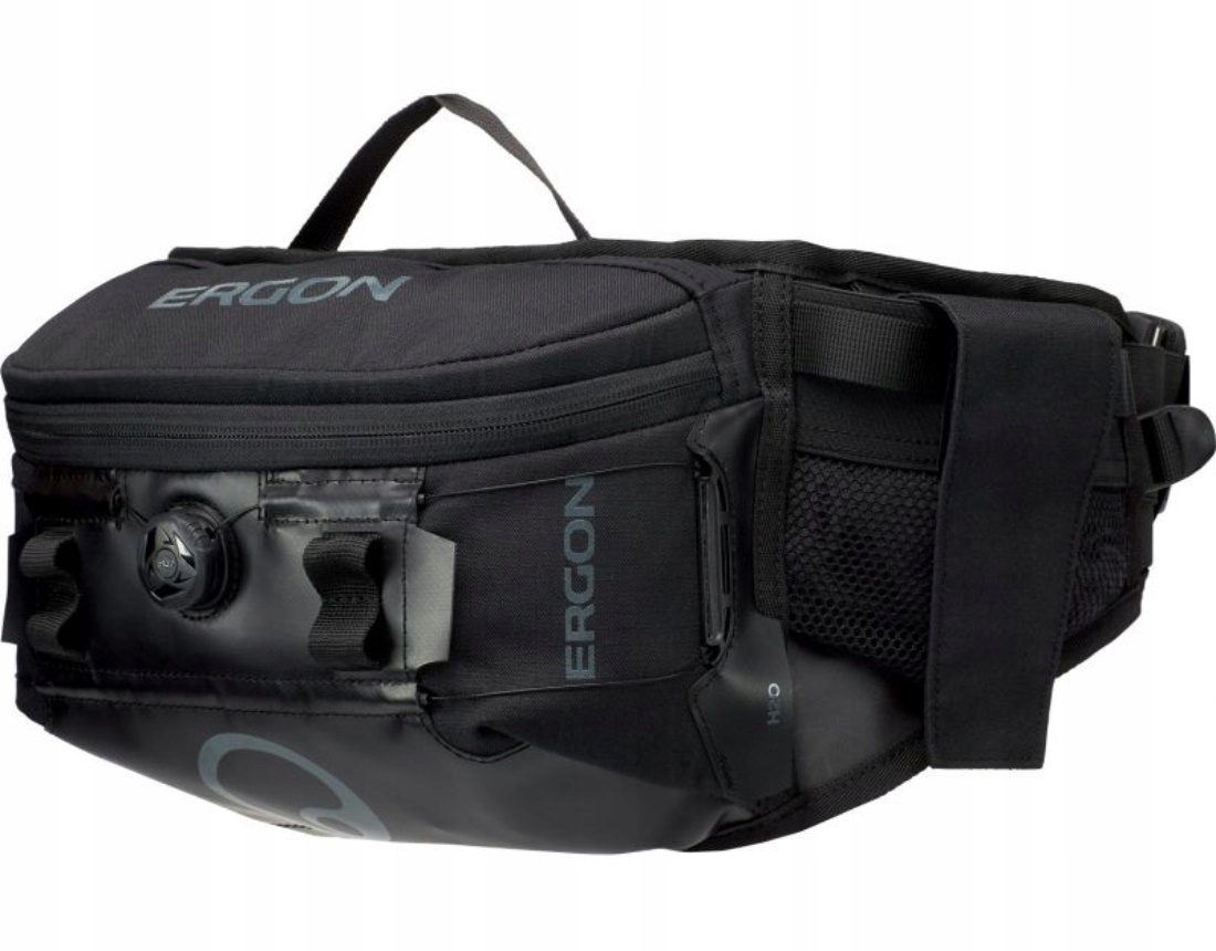 Через відсутність задньої пластини стандартні стегнові рюкзаки мають тенденцію зміщуватися під час їзди по технічній місцевості. Ergon вирішує цю поширену проблему за допомогою широкого нековзкого стегнового ременя в поєднанні з унікальною системою стиснення, яка забезпечує надійну та стабільну посадку. Система компресії – це поворотний механізм, який велосипедист може легко відрегулювати однією рукою, надійно та непомітно прикріплюючи до тіла важливі рюкзаки та навіть гідратаційний міхур.