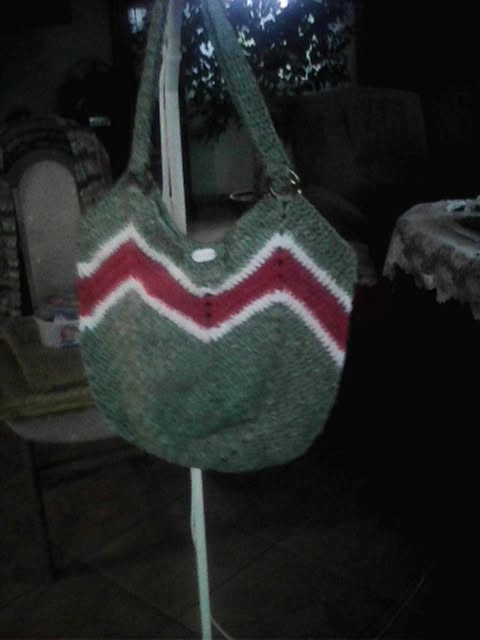 Красива в'язана сумка з зеленої синтетичної пряжі в біло-червону смужку, довжина сумки -31, ширина -32см. з ручками -53см. він кріпиться магнітом і відправляється негайно, без обмеження кількості штук