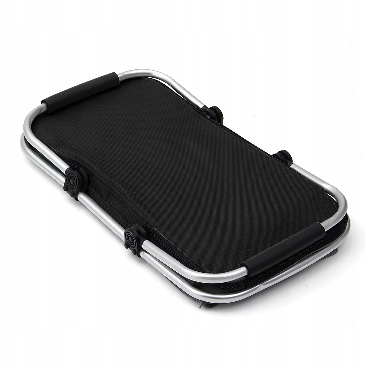 з вшитою алюмінієвою рамою з м’якими ручками. Інноваційний дизайн дозволяє скласти кошик за лічені секунди завдяки вшитому у бічних опорних ремінцях, які усувають проблему прогину кошика