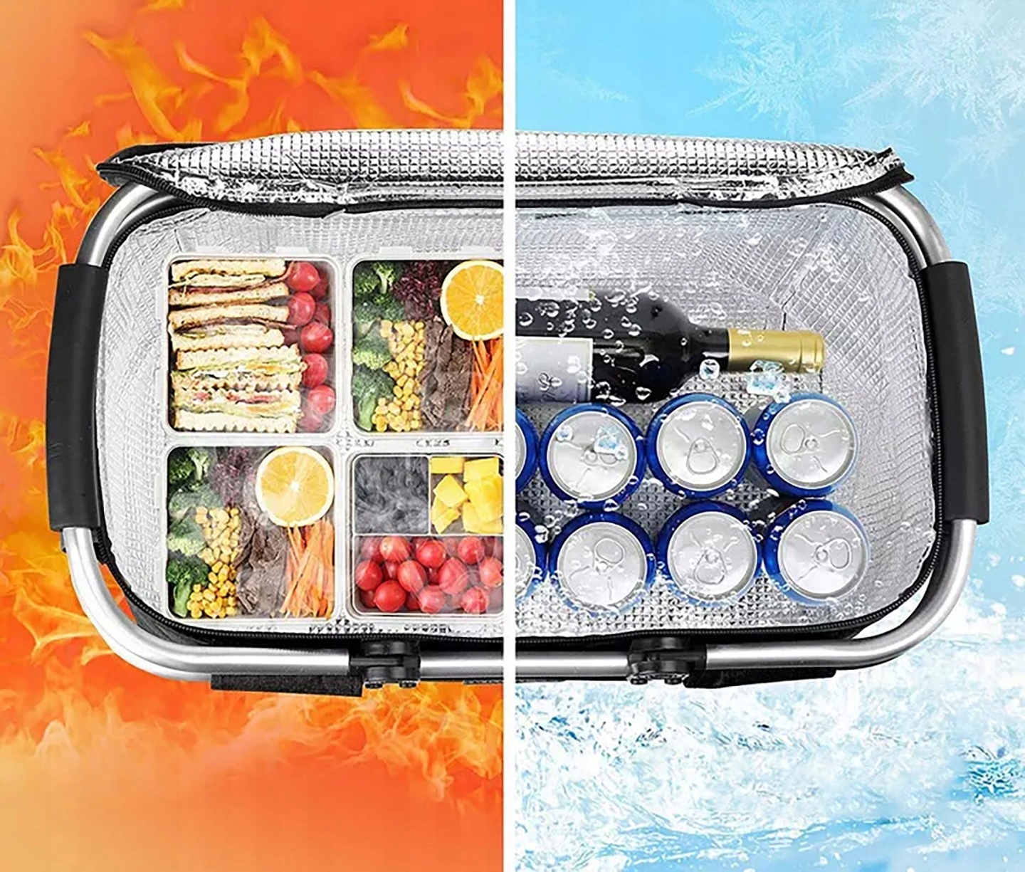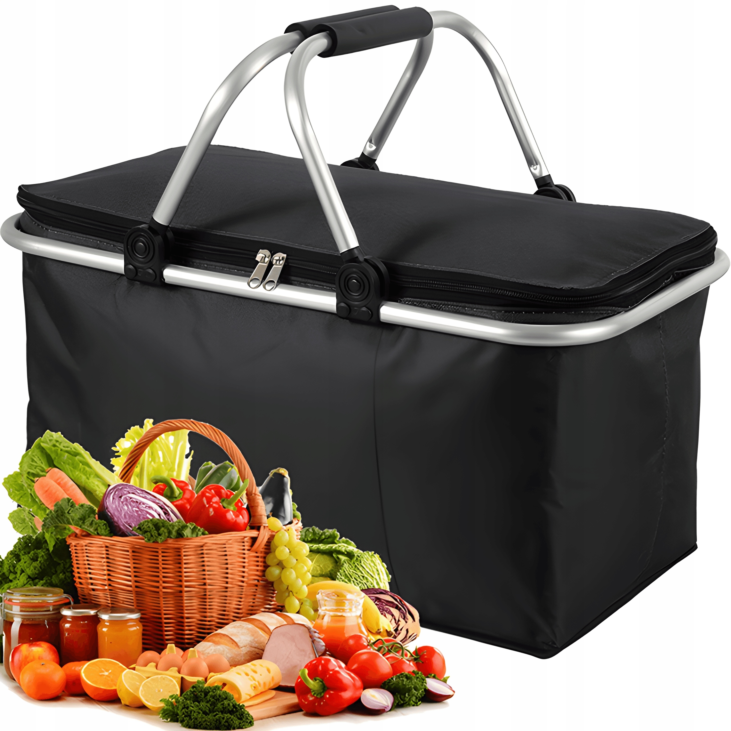 З перламутровою бавовною з алюмінієвою фольгою, ефективна для теплоізоляції. Кошик для пікніка, великий ізольований кошик для пікніка – м’ясо для барбекю сумка-холодильник для напоїв - складаний складаний кошик для охолодження для сімейних свят Заходи на відкритому повітрі, зберігаючи їжу прохолодною або теплою