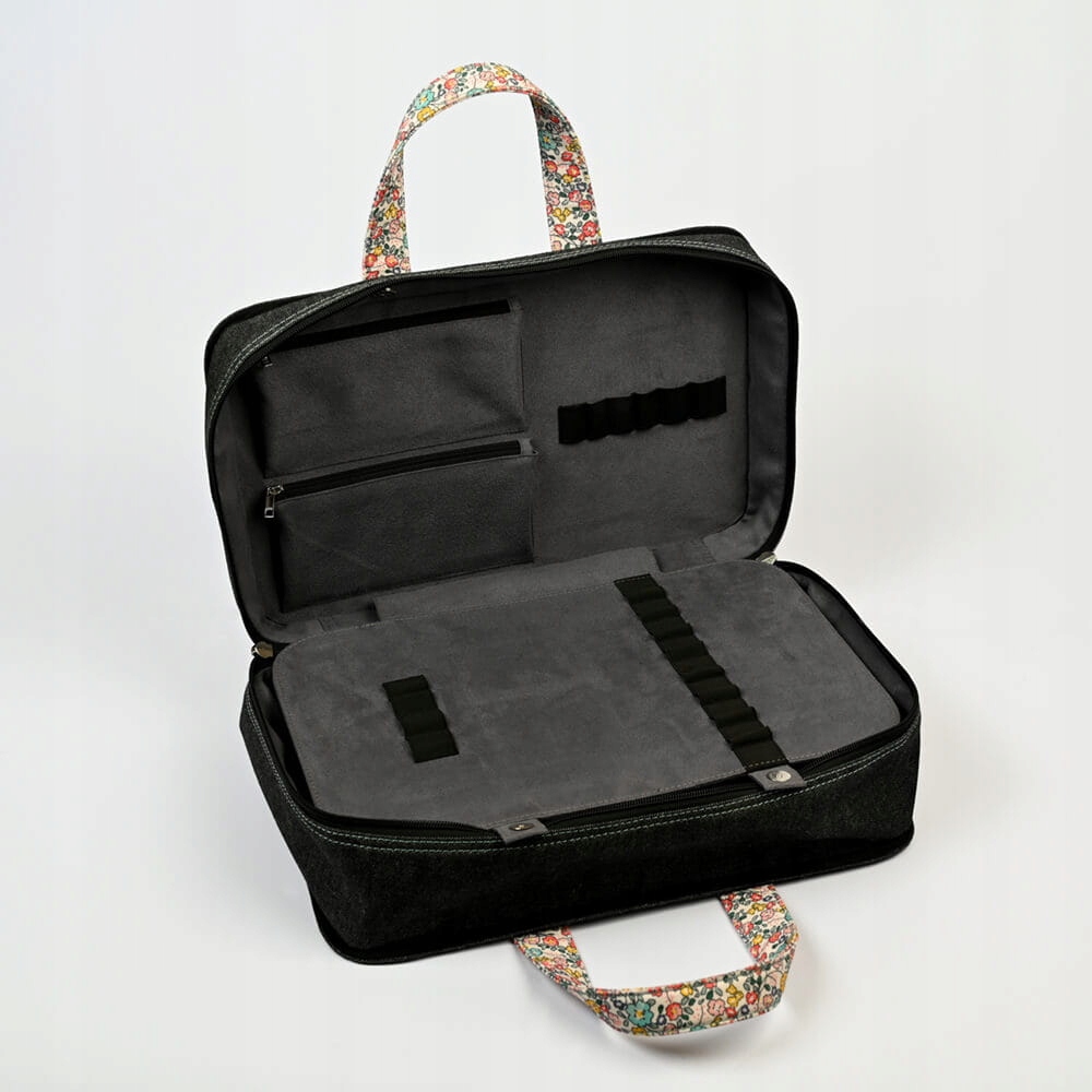 Сумка Bloom Doctor Bag від відомого та популярного бренду Knitpro. Призначений для зберігання в'язального приладдя та роботи. Закривається на блискавку. Він може вмістити багато. Всередині дві великі кишені на блискавці. Це функціональний, сучасний, жіночний гаджет. Зовнішній матеріал - джинс, всередині сірий і приємний на дотик, нагадує замшу. Деталі виготовлені з матеріалу з квітковим мотивом. Сумка - ідеальний подарунок для кожної в'язальниці! :)