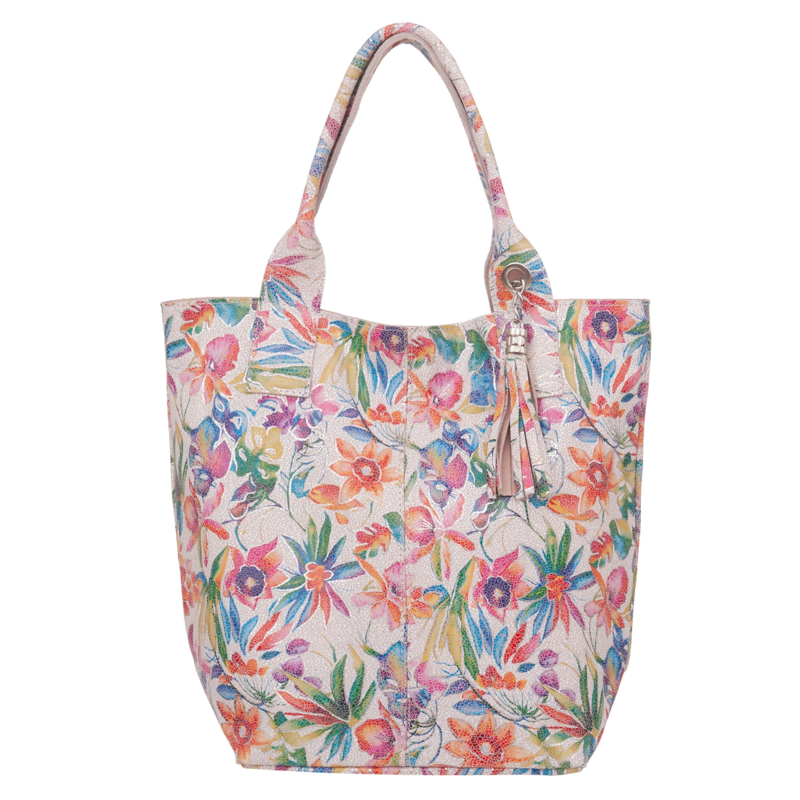 Vera Pelle - кольорова італійська сумочка FLOWERS формату А4, шкіряна сумка для покупок