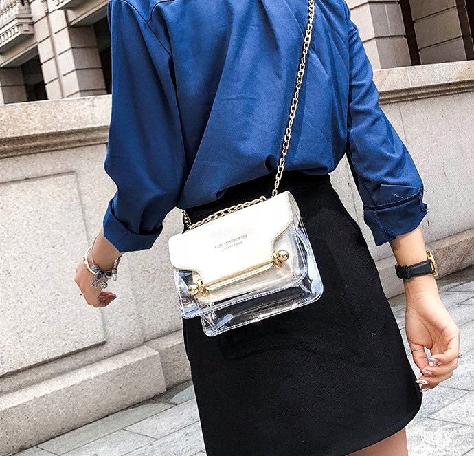 Прозора синтетична сумка, клапан з екошкіри