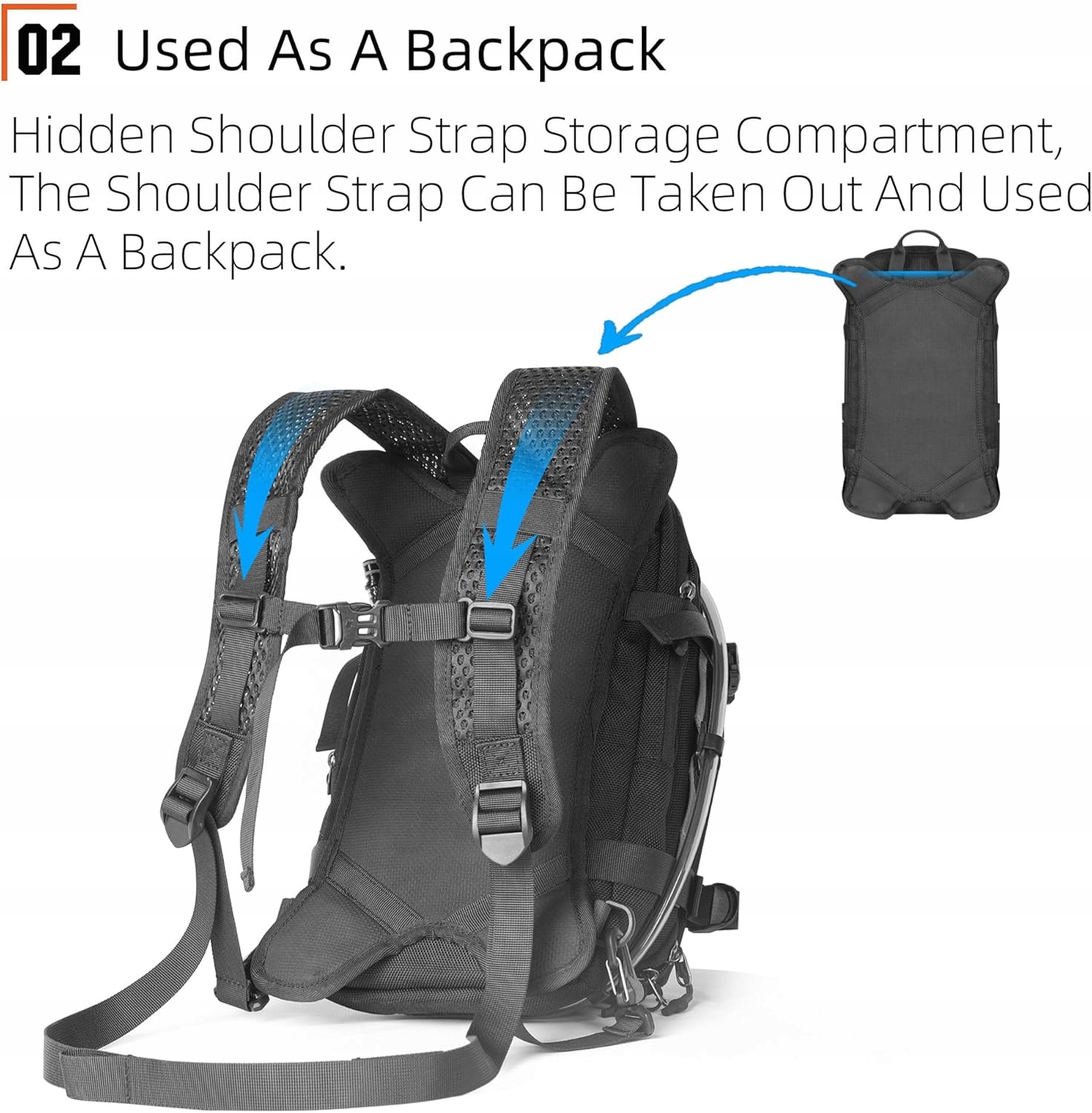 - Приховане зберігання для плечового ременя, плечового ременя можна зняти і використовувати як рюкзак