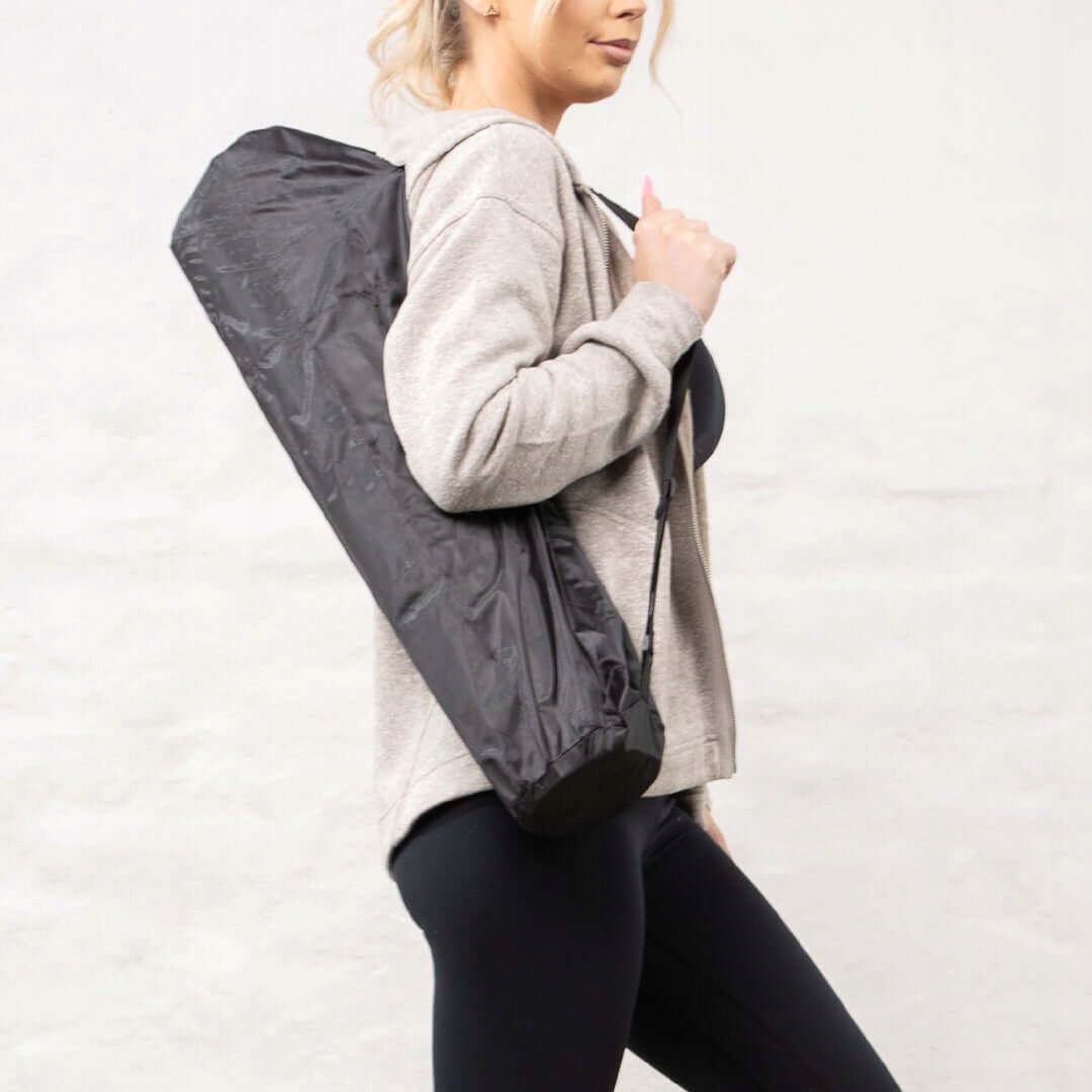 Класична транспортна сумка для безпечного транспортування килимка для йоги. Сумка надзвичайно легка, водонепроникна та легко чиститься.Підходить для всіх килимків для йоги, довжина яких не перевищує 65 см і діаметр 14 см у складеному вигляді, а вага яких не перевищує 2 кг.Сумка легко закривається за допомогою рядок. Регульовані лямки роблять цей продукт ідеальним для всіх, незалежно від розміру тіла. Ручки для перенесення зручні та підтримують, і ви можете носити його в руці або повісити на плече. Залежно від товщини килимка для йоги, чохол також пропонує додаткове місце для ремінця для йоги.