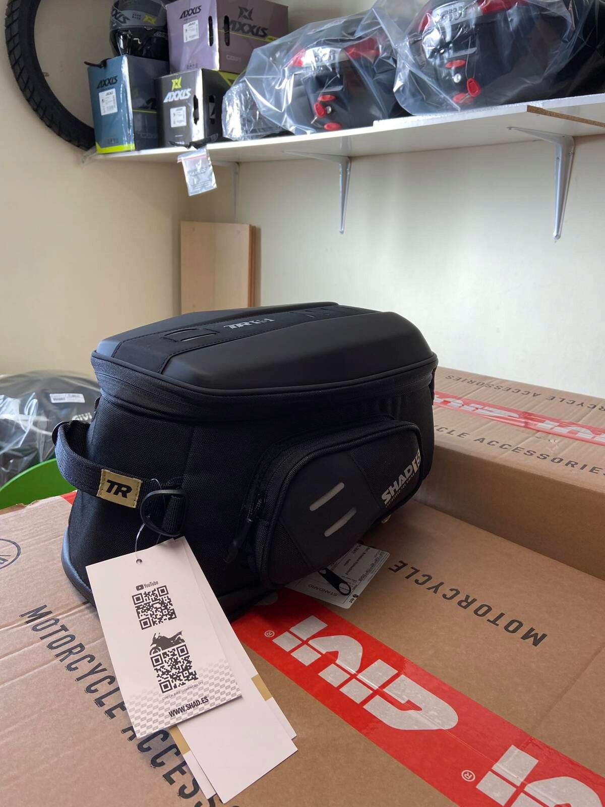 Блискавки мають зручні ручки, які дозволяють працювати в рукавичках. Дно сумки має регульований клапан, що дозволяє підігнати форму сумки під профіль паливного бака. Кріплення Click System можна розмістити в одному з двох положень, розташувавши сумку спереду або ззаду, залежно від конфігурації мотоцикла та положення водія. Сумка потребує кріплення Click System для даної моделі мотоцикла, продається окремо. Ємність мішка: 13 літрів. Сумка на бак TR15 доповнює серію м’якого багажу SHAD Terra, утворюючи набір із бічних кошиків TR40 і заднього кошика TR50. Сумка-бак серії Click System кріпиться за допомогою перехідника на паливний заливний отвір. Дозволяє швидко прикріплювати і від'єднувати сумку за допомогою кнопки. Версії, позначені символом CL, оснащені замком, який запобігає відстібанню сумки.