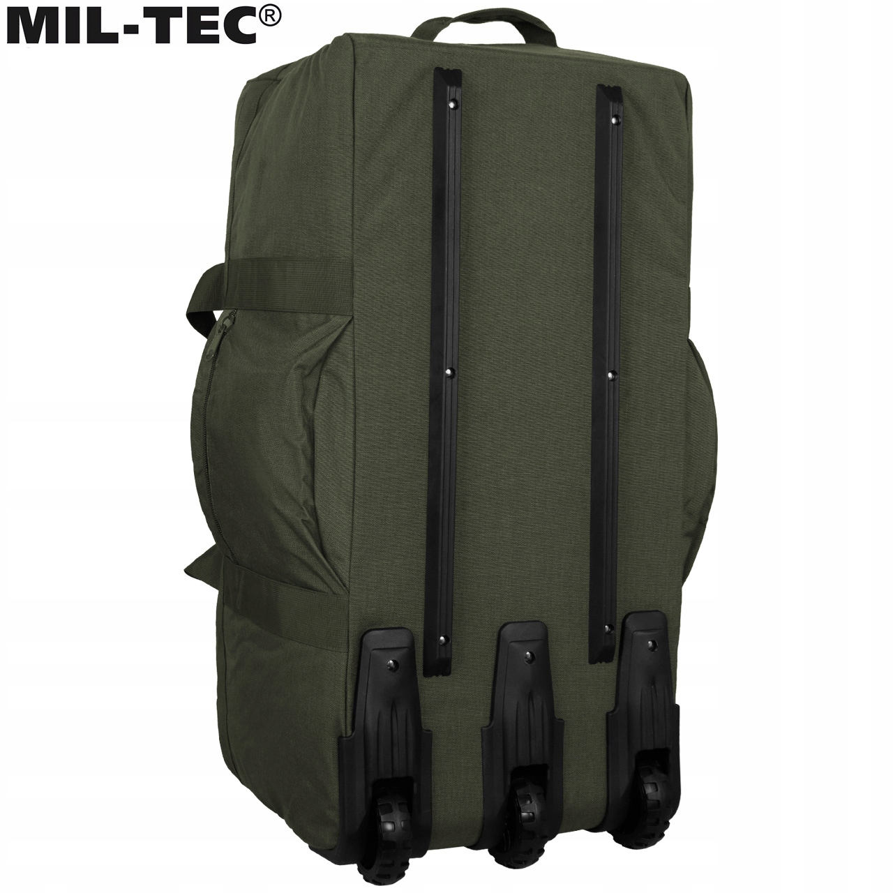 Сумка на колесах ємністю 110 л від німецького бренду Mil-Tec призначена для солдатів, які відправляються на завдання. Рекомендовано мандрівникам і туристам. Міцна модель 3-в-1, яка поєднує в собі переваги сумки, валізи та рюкзака, адаптована для перенесення важкого багажу та обладнання.