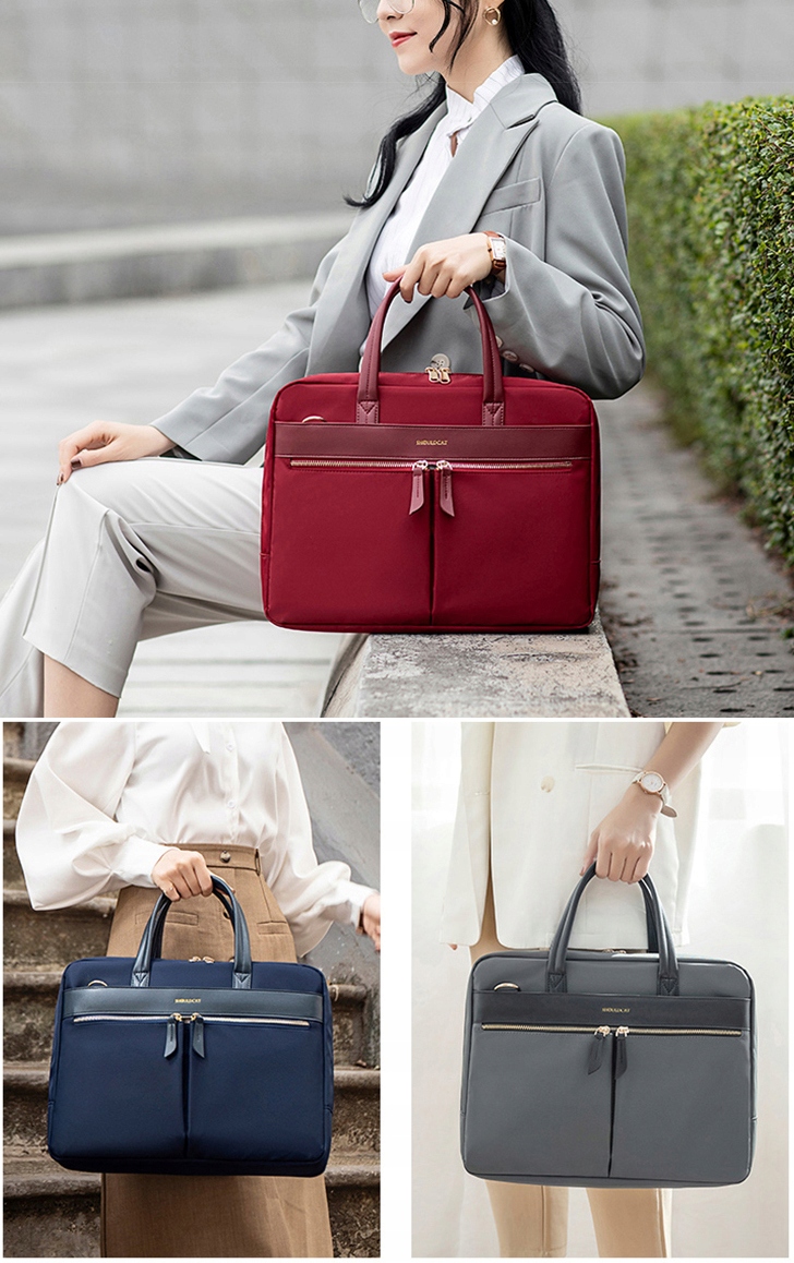 Сумка оснащена зручними ручками і плечовим ременем. Він має багато кишень на блискавці, у тому числі одну з функцією RFID (радіочастотна ідентифікація).