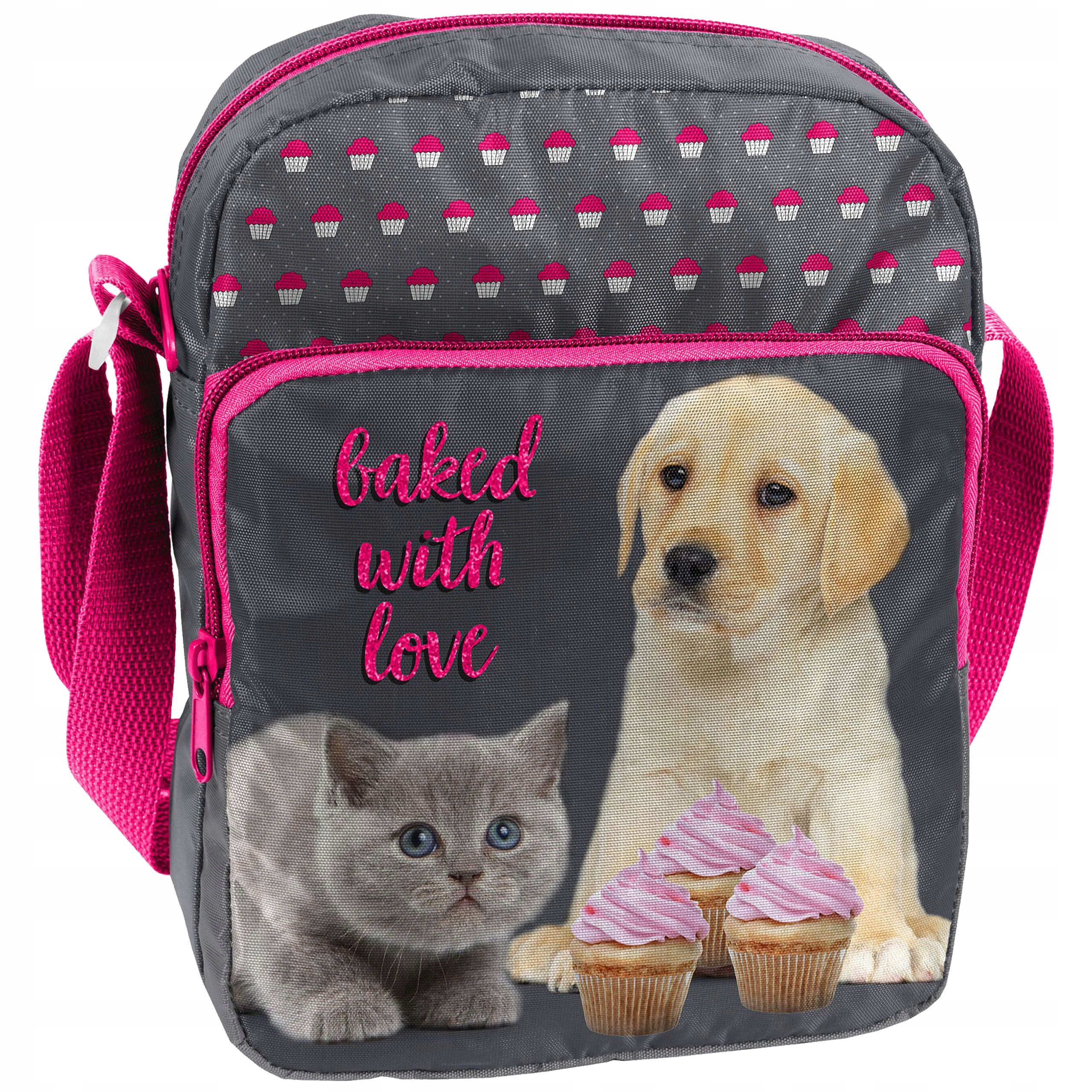 Унікальна, модна і дуже дівчача сумка на плече з колекції Paso. Виготовлений з високоякісних, міцних, водонепроникних матеріалів. Ідеальний, зручний, ідеальний для прогулянки, шопінгу чи подорожі. На сумці печенька лабрадор і красиве маленьке, сіре кошеня. Його великі, красиві та мудрі очі захоплюють і сповнені любові. Полуничні кекси на передній і задній частині пакетавиглядають дуже смачно. Якщо ви фанат полуничних кексів, любите великих собак і маленьких котів, тоді ця сумка була створена спеціально для вас.
