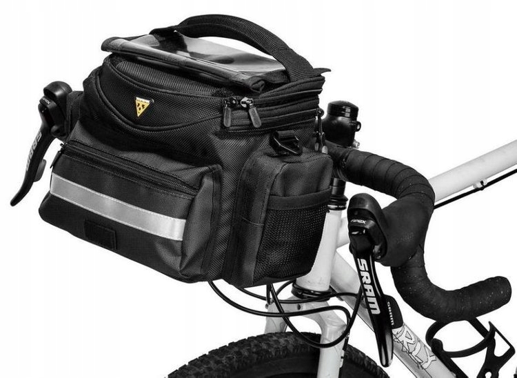Багатофункціональна сумка на кермо середнього розміру з системою швидкого встановлення. Повністю підбитий м'якою жовтою підкладкою, яка дозволяє легко знаходити дрібні предмети всередині. Чудово підходить для туристичних поїздок на цілий день, у місто та для повсякденного використання.