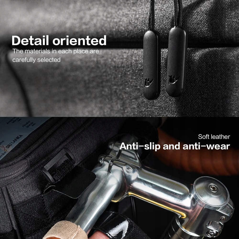 - Багатофункціональна сумка 2 в 1: велосипедна сумка на кермо та сумка через плече, якщо потрібно. За допомогою пряжок з обох боків сумки її можна прикріпити до керма за допомогою застібок і легко закріпити.