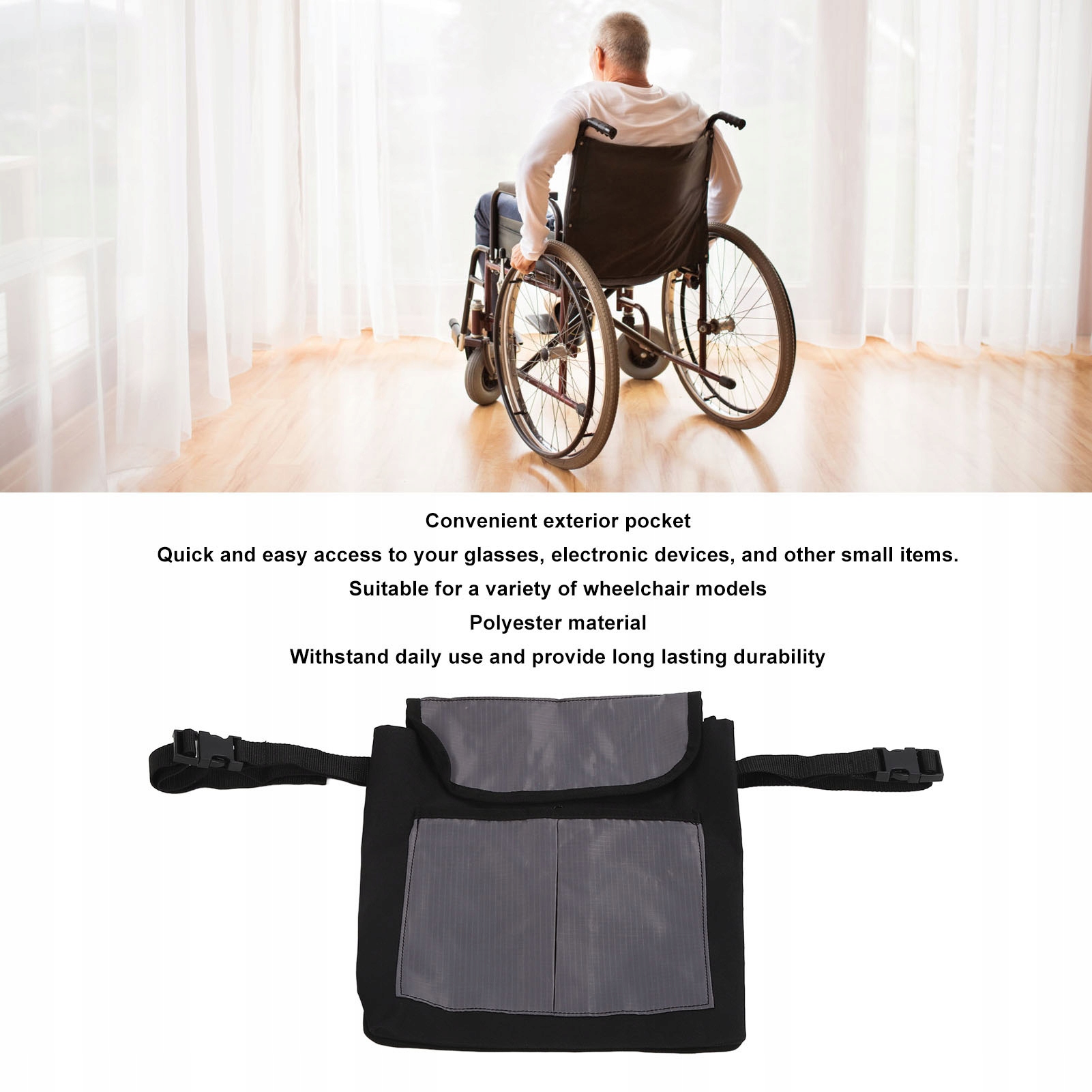 5. Міцний і надійний: сумка для спинки інвалідного візка, виготовлена з поліестеру, призначена для щоденного використання та забезпечує довговічність.