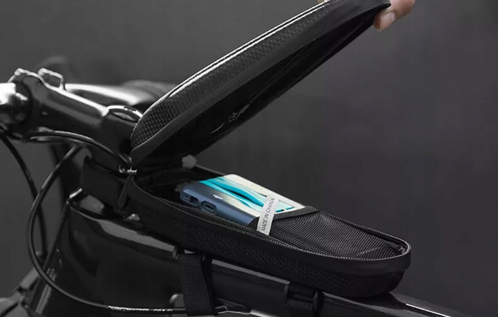 Rockbros B61 пропонує одну більшу кишеню та 2 відділення, які допоможуть вам упорядкувати. У верхній кишені на блискавці можна легко помістити, наприклад, ключі, міні-велопомпу або інструменти, які стануть у нагоді при можливій поломці велосипеда. У відділення можна помістити смартфон, гаманець, зарядний кабель або документи.