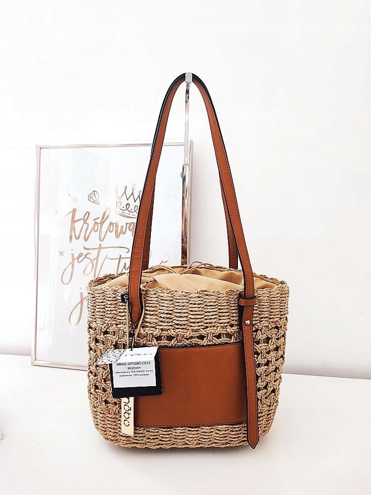 Сумка-кошик для носіння в руці або на плечі зі зручними ручками з екошкіри.