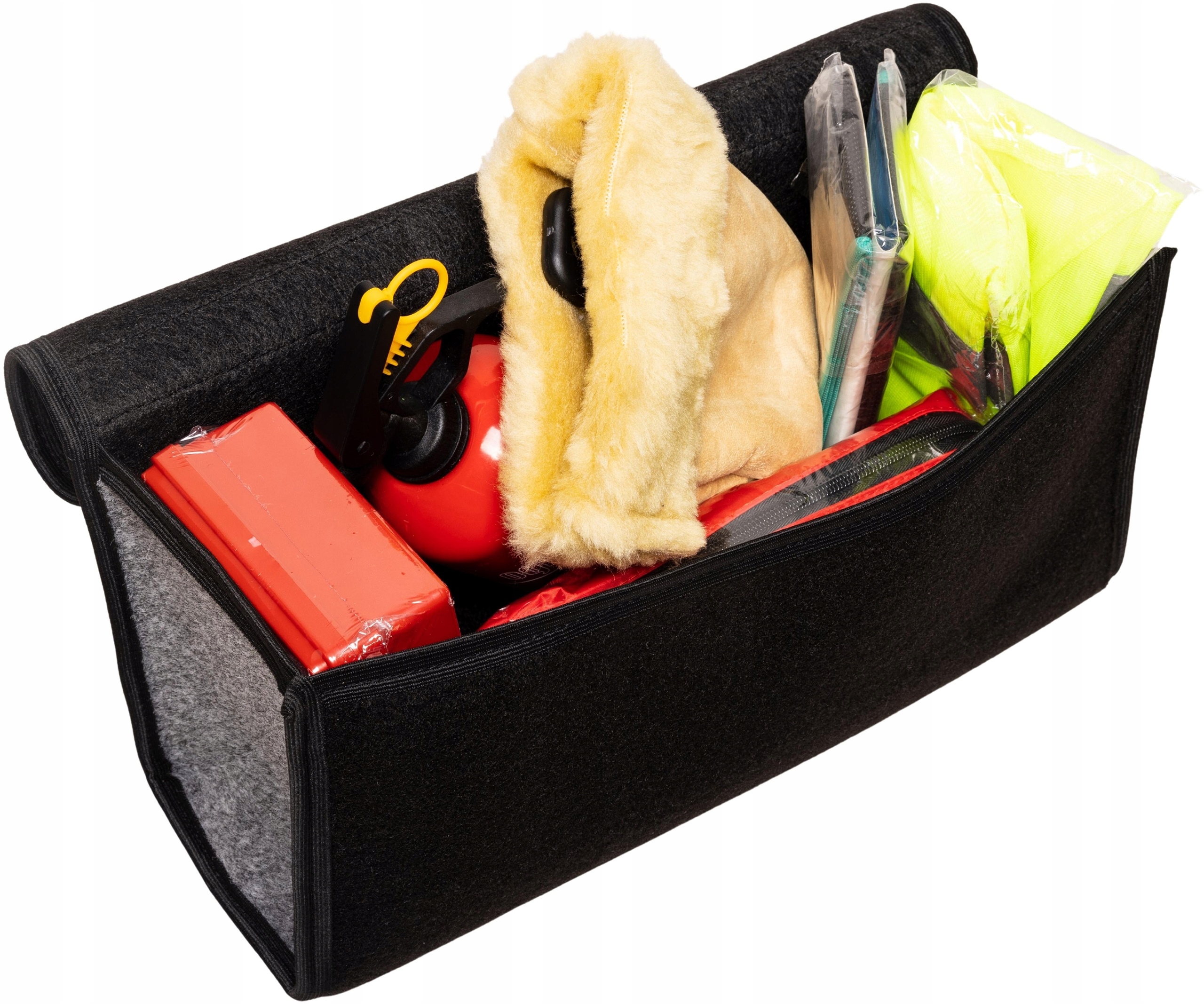 - Зручна форма дозволяє зберігати п’ятилітрову ємність моторного масла чи рідини для омивання вітрового скла або кілограмовий вогнегасник, а також інші інструменти, необхідні в автомобілі, набір лампочок, аксесуари тощо.