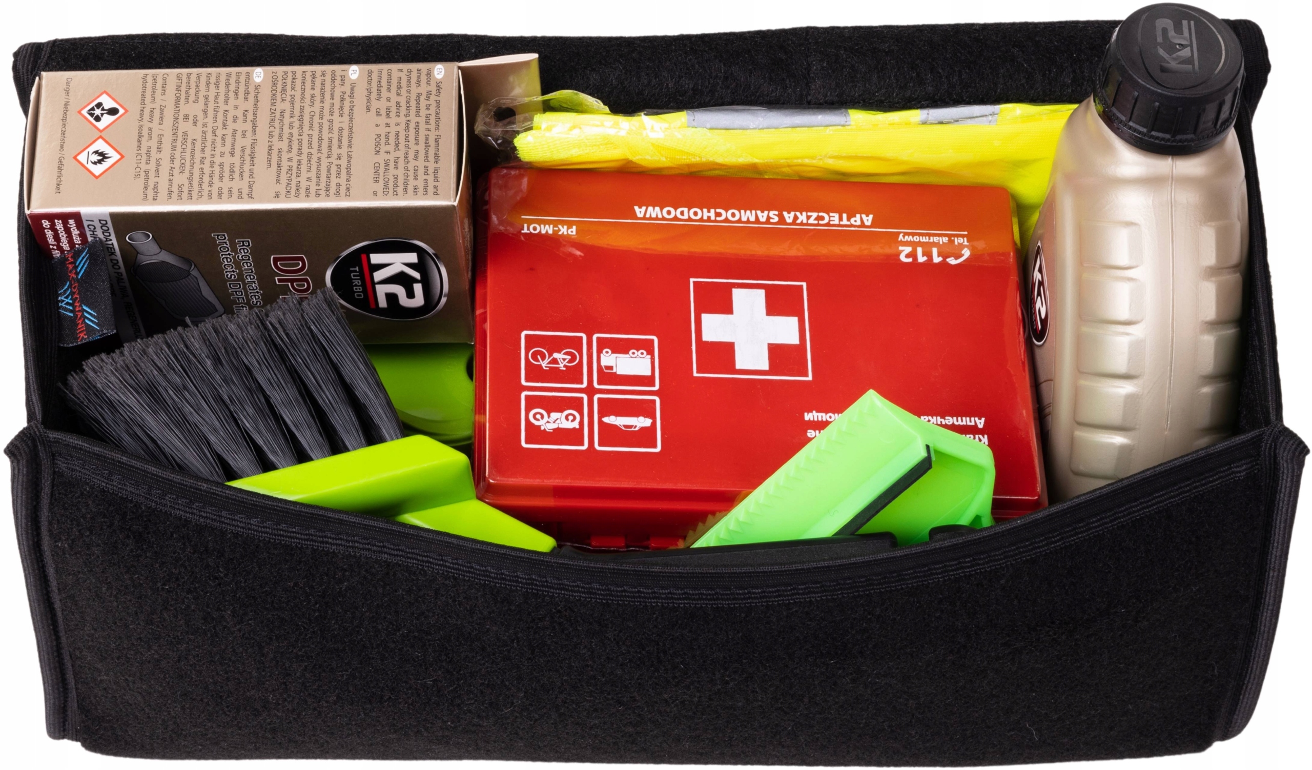 - Зручна форма дозволяє зберігати п’ятилітрову ємність моторного масла чи рідини для омивання скла або кілограмовий вогнегасник, а також інші інструменти, необхідні в автомобілі, набір лампочок, аксесуари тощо