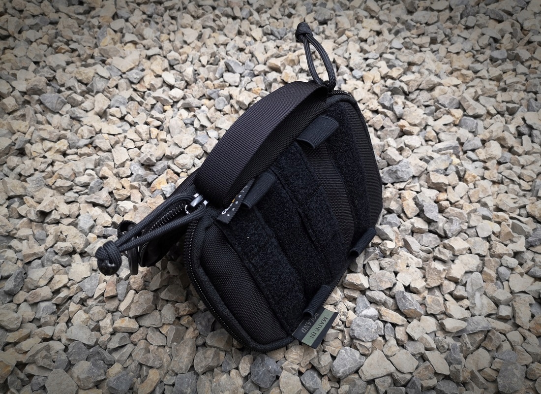 Ззаду є 5 ремінців 25 мм, які дозволяють кріпити сумку на M.O.L.L.E, поясі чи іншій системі ременів завдяки аксесуарам для кріплення, доступним у конфігураторі. У самому низу є кільце D для підвішування сумки або кріплення кулонів, ключів або підвісок, наприклад, з паракорду.