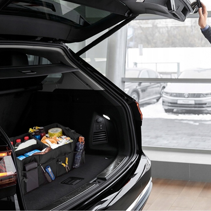 - МІСТКІСТЬ ТА ПРАКТИЧНІСТЬ – автомобільний органайзер великий, у нього легко помістяться різноманітні аксесуари, покупки чи речі для кемпінгу/пікніка/подорожі. Він має жорсткі стінки, і коли він не використовується, його можна швидко скласти до невеликих розмірів.