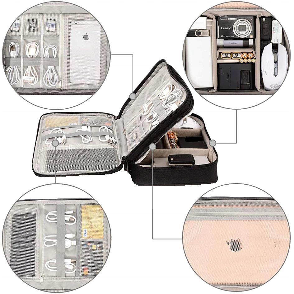 - ✅Містка двошарова конструкція - всередині є різні види кишень для організація електронних аксесуарів і кабелів. Ви можете попрощатися з помилками та безладдям