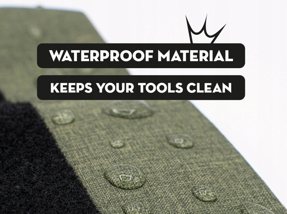 Міцна обмотка виготовлена з надзвичайно міцного, повністю водонепроникного матеріалу та має зварні шви, завдяки щоб інструменти не забруднилися брудом чи пилом – навіть у найгіршу погоду. Існує навіть повністю водонепроникна внутрішня кишеня для безпечного та сухого зберігання дрібних деталей і цінностей.