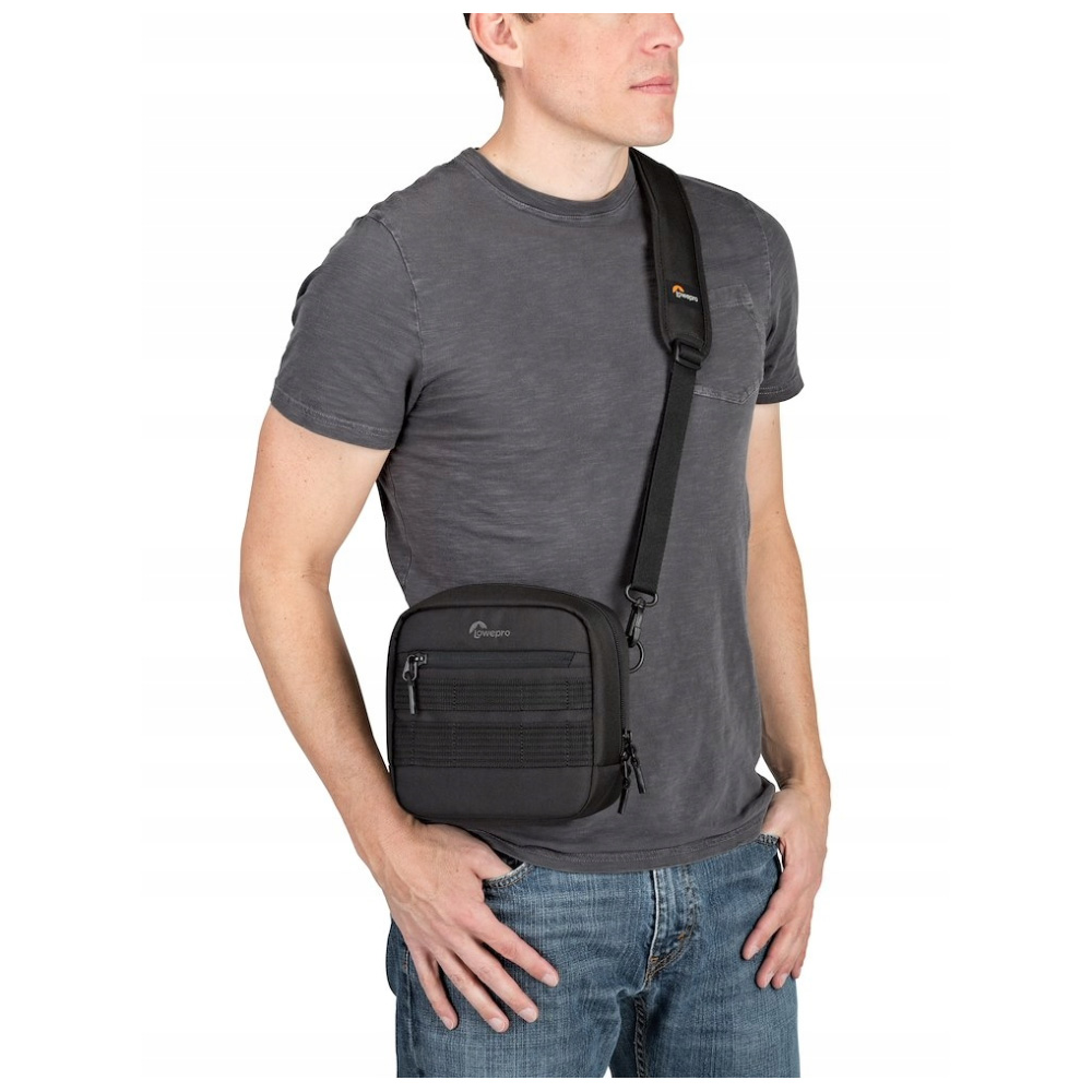 Utility Bag 100 AW — це маленька сумка, призначена для дзеркальної фотокамери з ручкою (без об’єктива) або об’єктива, спалаху та менших аксесуарів.