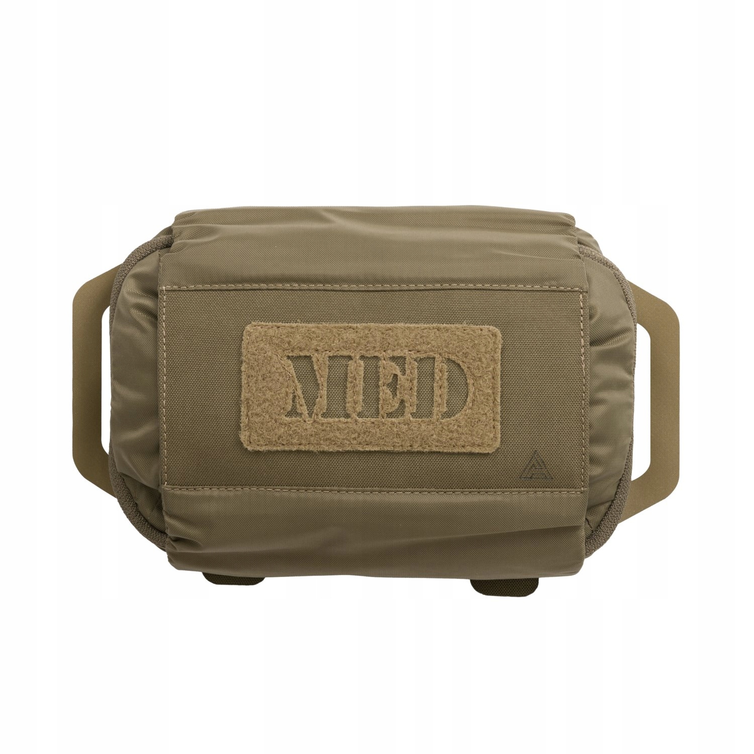 Злегка змінена й оновлена версія MED POUCH HORIZONTAL. Найбільшою зміною є більш помітний напис MED на лицьовій частині, який дозволяє додавати різні нашивки, включно з інфрачервоними знаками, на вирізану лазером петлю Velcro®. Сама аптечка зберігає найважливіші особливості, відомі з попередніх версій. Частково еластична зовнішня кишеня може вмістити навіть більше медичного обладнання, залишаючись дуже плоскою. Незважаючи на те, що мішечок в основному призначений для розміщення на задній частині MOSQUITO Modular Belt Sleeve®, його можна використовувати на будь-якій поверхні, сумісній з MOLLE/PALS, або на ремені пістолета шириною до 45 мм. Сумка забезпечує легкий двосторонній доступ до вставки за допомогою нековзких манжет Hypalon®. Внутрішня частина вкладиша на блискавці призначена для зберігання необхідних речей першої допомоги на місці завдяки добре спланованим еластичним петлям. Петля Velcro® на задній частині вставки дає змогу прикріпити сумку SHEARS.
