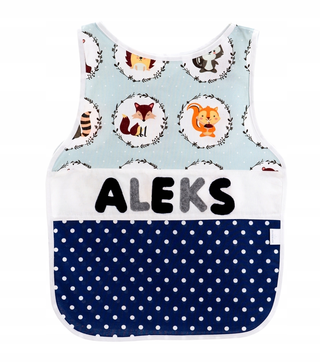 - з боків пришиті еластичні стрічки (забезпечують швидке та ефективне надягання та знімання, наприклад, під час їжі в дитячому садку),