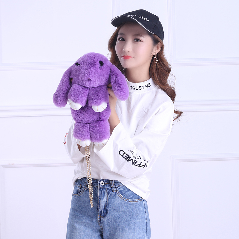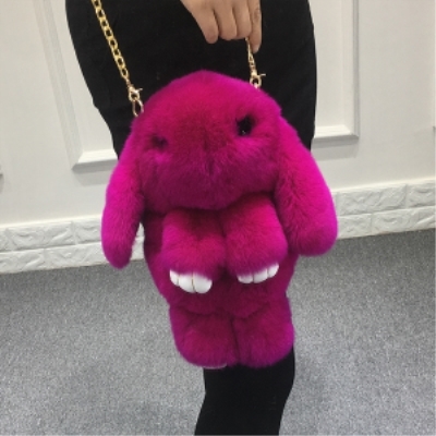 СУМКА-РЮКЗАК З ХУТРА КРОЛІКА З ПОМПОНАМИ