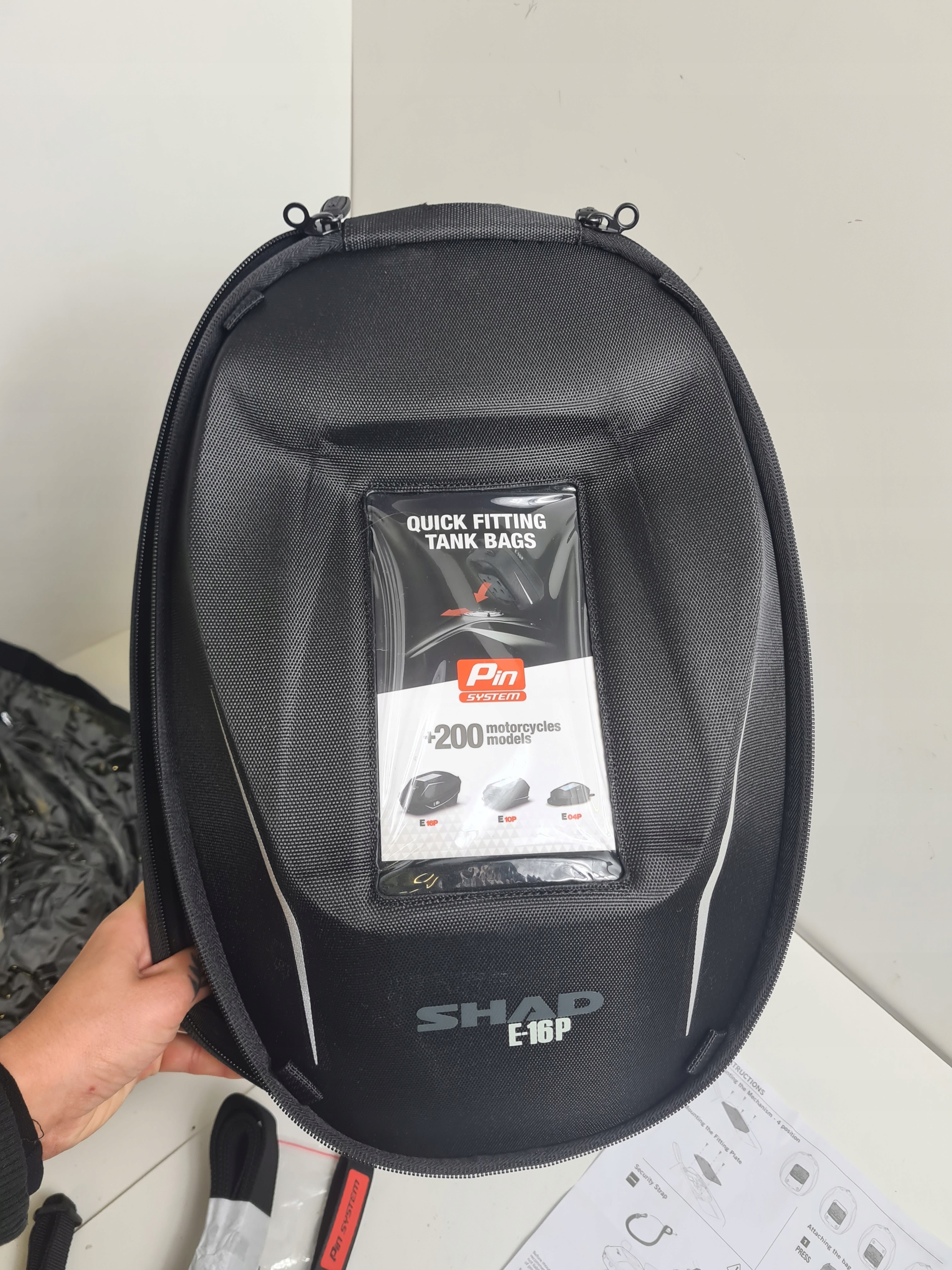 Сумка кріпиться на бак за допомогою сильних магнітів або ременів, що гарантує стабільність під час руху.