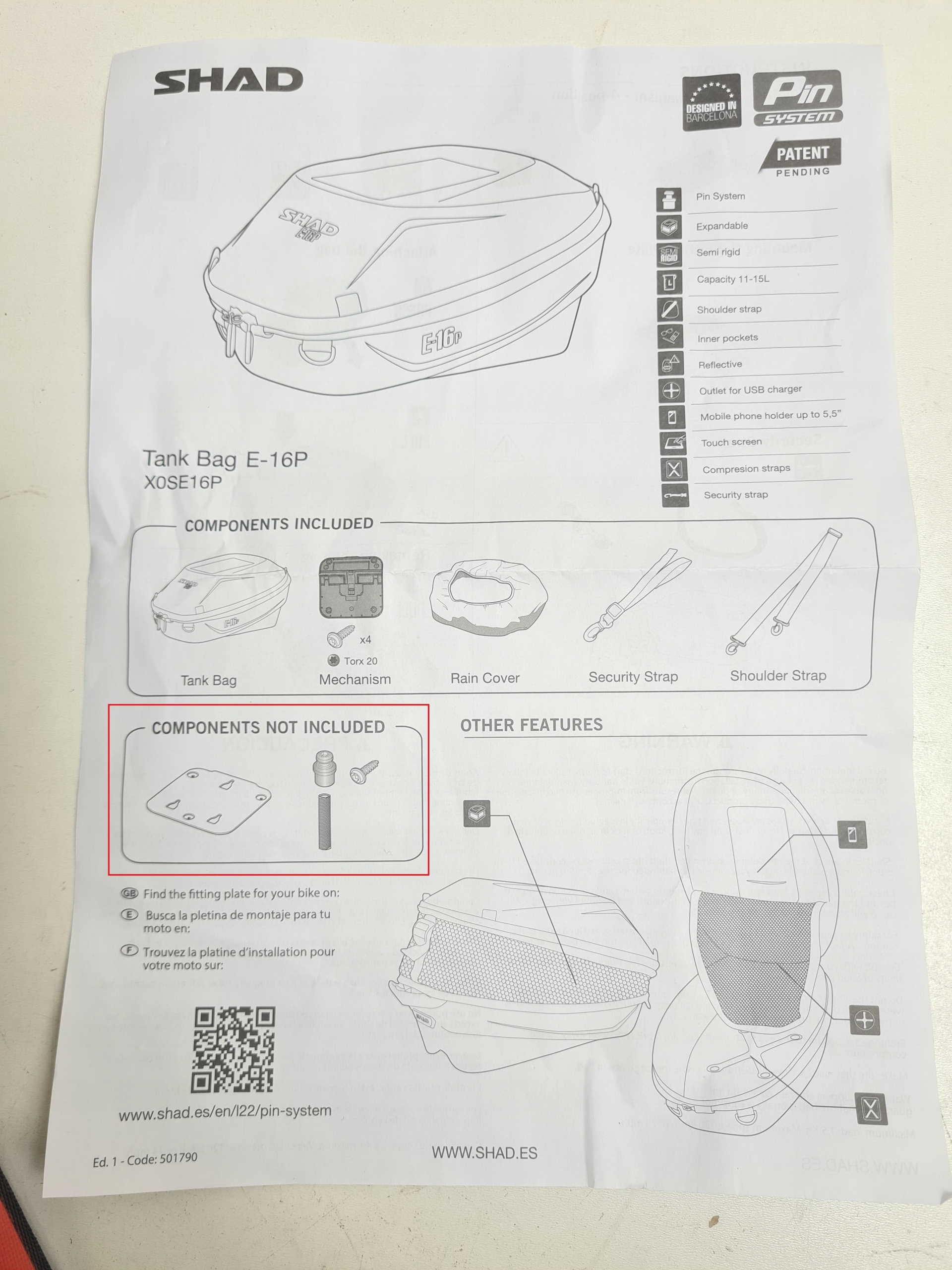 СУМКА SHAD TANK BAG E16P PIN SYSTEM 11/15L 28X20X40