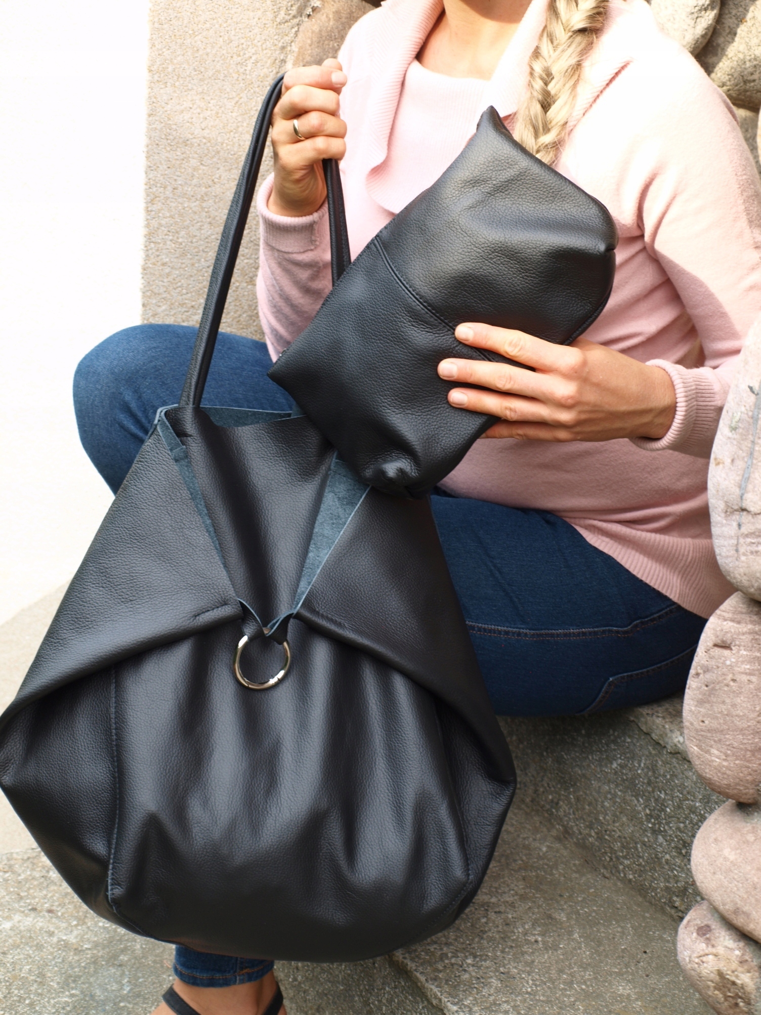 Завдяки м'якій шкірі та металевій пряжці сумку можна стилізувати в різних стилях p>