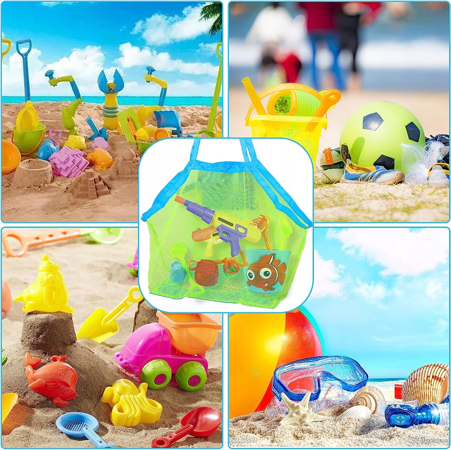 Велика сітчаста пляжна сумка, найкращий вибір для зберігання дитячих іграшок, аксесуарів для плавання, пляжних іграшок, рушників, сандалій, мокрого або брудного одягу тощо.