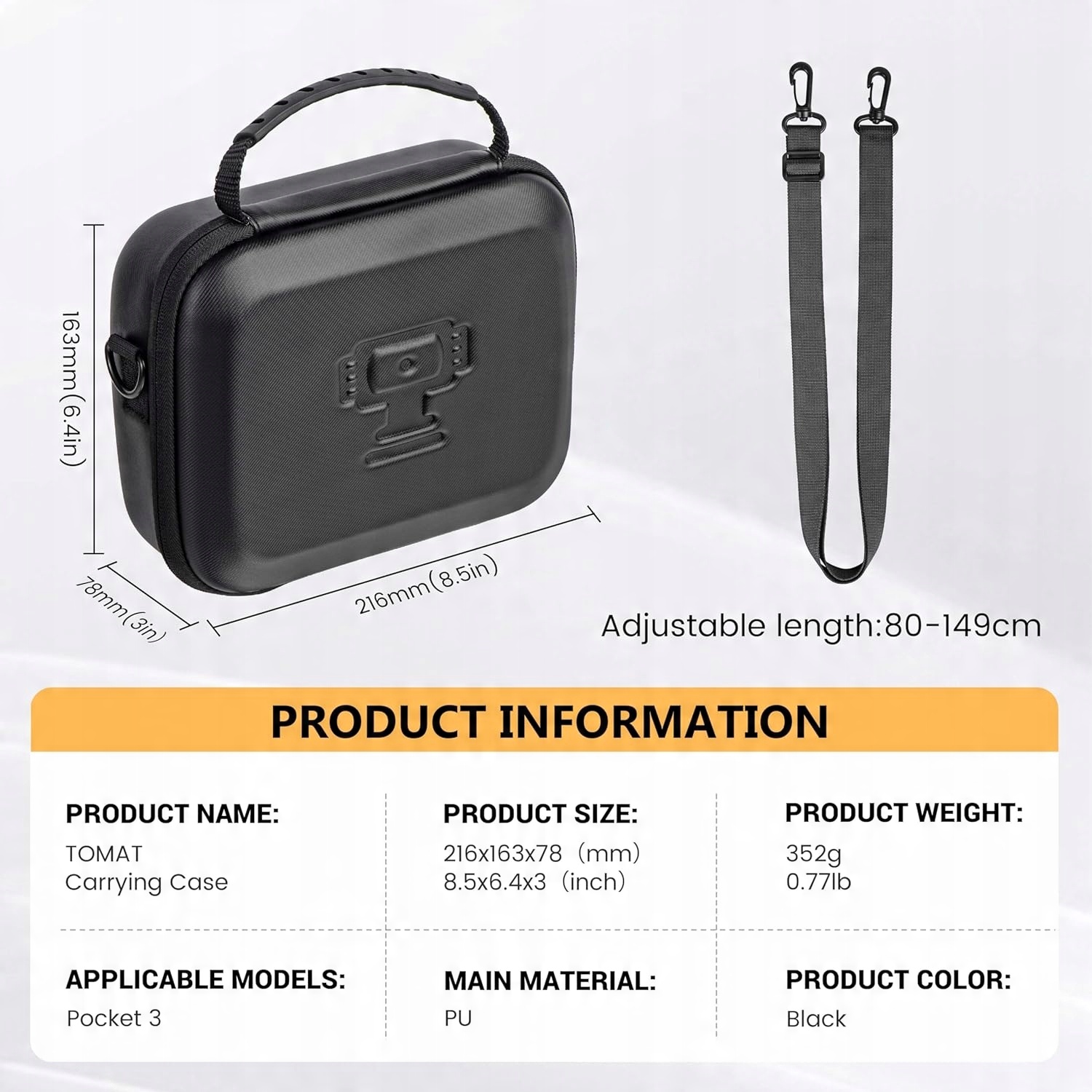 【Список речей, які потрібно упакувати】 1 x Osmo Pocket 3 Case, розмір: 8,5*6,4*3 дюйми, вага: 0,77 фунта (примітка: лише випадок, кишеньковий Osmo 3 та інші аксесуари Жодне аксесуари не додаються.