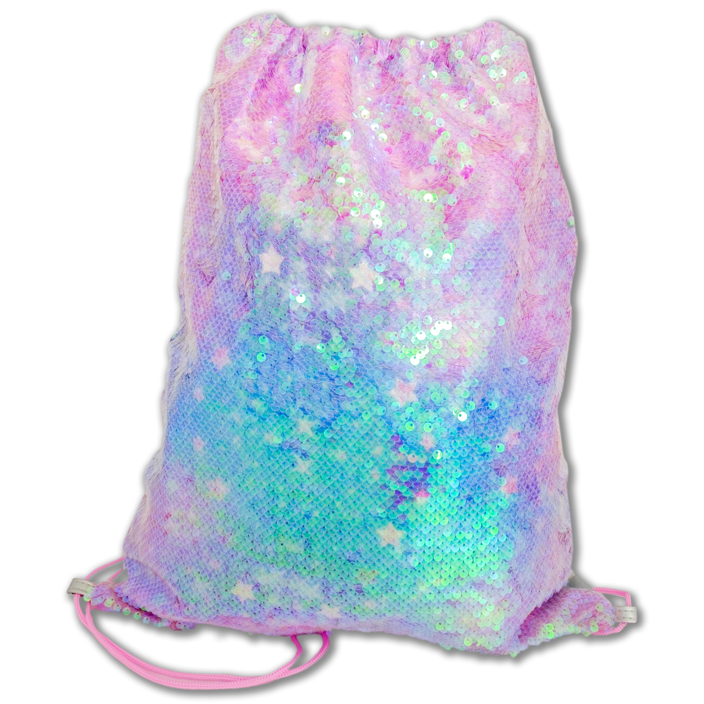 Рожева сумка з паєтками переливається багатьма відтінками завдяки голографічним блискіткам. У нього можна помістити купальний костюм, взуття або книги формату А4. Сумку зручно носити завдяки сріблястому покриттю зі штучної шкіри на тильній стороні. Акуратно зроблений, з підкладкою всередині. Шнурки з рожевими шнурками.