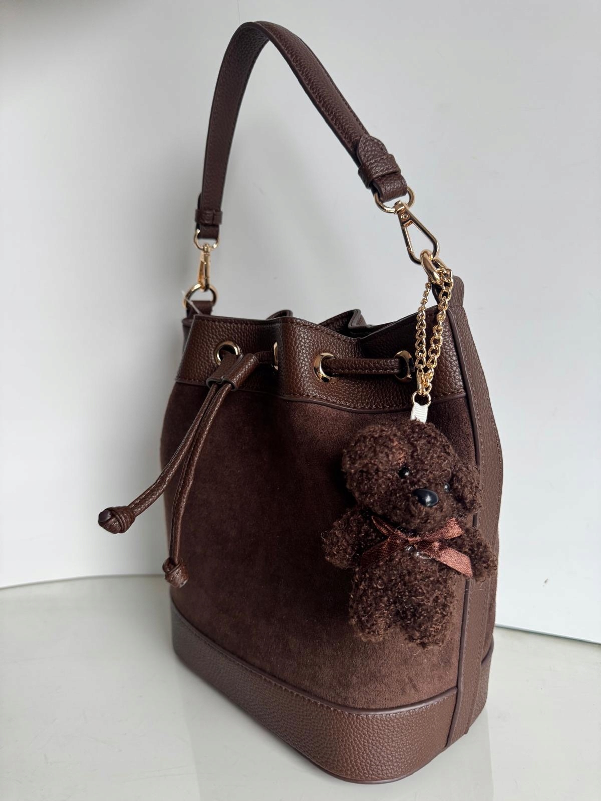 Галантна сумочка зачаровує сучасний та витончений дизайн відра. Стилізація смішного та оригінального акценту. Його місткий інтер'єр вмістить необхідні дрібниці: телефон, гаманець, косметолог і навіть невеликий зошит. Дані та розміри та розміри: