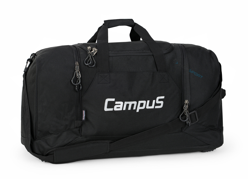 Велика спортивно-туристична сумка Campus ємністю 75 л, виготовлена з високоякісних поліестерових матеріалів. Ідеально підходить як дорожня сумка. Це сумка на 3 відділення на П-подібній блискавці, що застібається зверху, тому в неї зручно упакувати всі необхідні речі. З обох сторін розташовані додаткові кишені-відсіки. Корисна для тренувань або подорожей, оснащена короткими ручками та регульованим знімним плечовим ременем. Має посилене дно і додаткові ніжки, які запобігають прямому контакту сумки з землею. Сумки Campus виготовлені зі спеціального матеріалу щільного переплетення, виготовленого за технологією Endura 4xC. Endura_ 4xC - це унікальна 4-шарова комбінація тканини з поліуретаном або ПВХ для збільшення довговічності та покращення водонепроникності матеріалу. З боків дві великі кишені на блискавці, а посередині ще одна додаткова кишеня на липучці. Завдяки цим властивостям, сумка дуже містка, і ви можете легко впорядкувати в ній свій багаж.