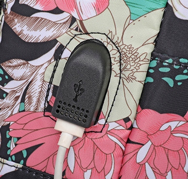 Рюкзак оснащений кабелем USB, який можна використовувати, наприклад, для підключення