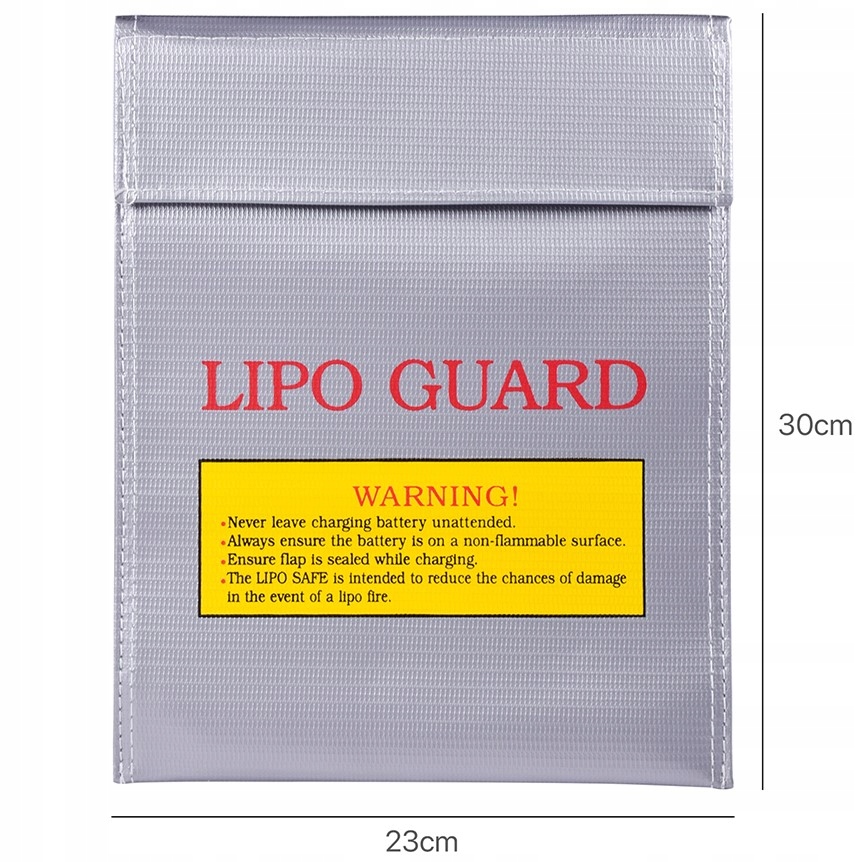 Захисна сумка Lipo Guard виготовлена з високоякісних, міцних матеріалів для захисту акумулятора під час заряджання, зменшення ризику займання, а також для зберігання та транспортування акумулятора.