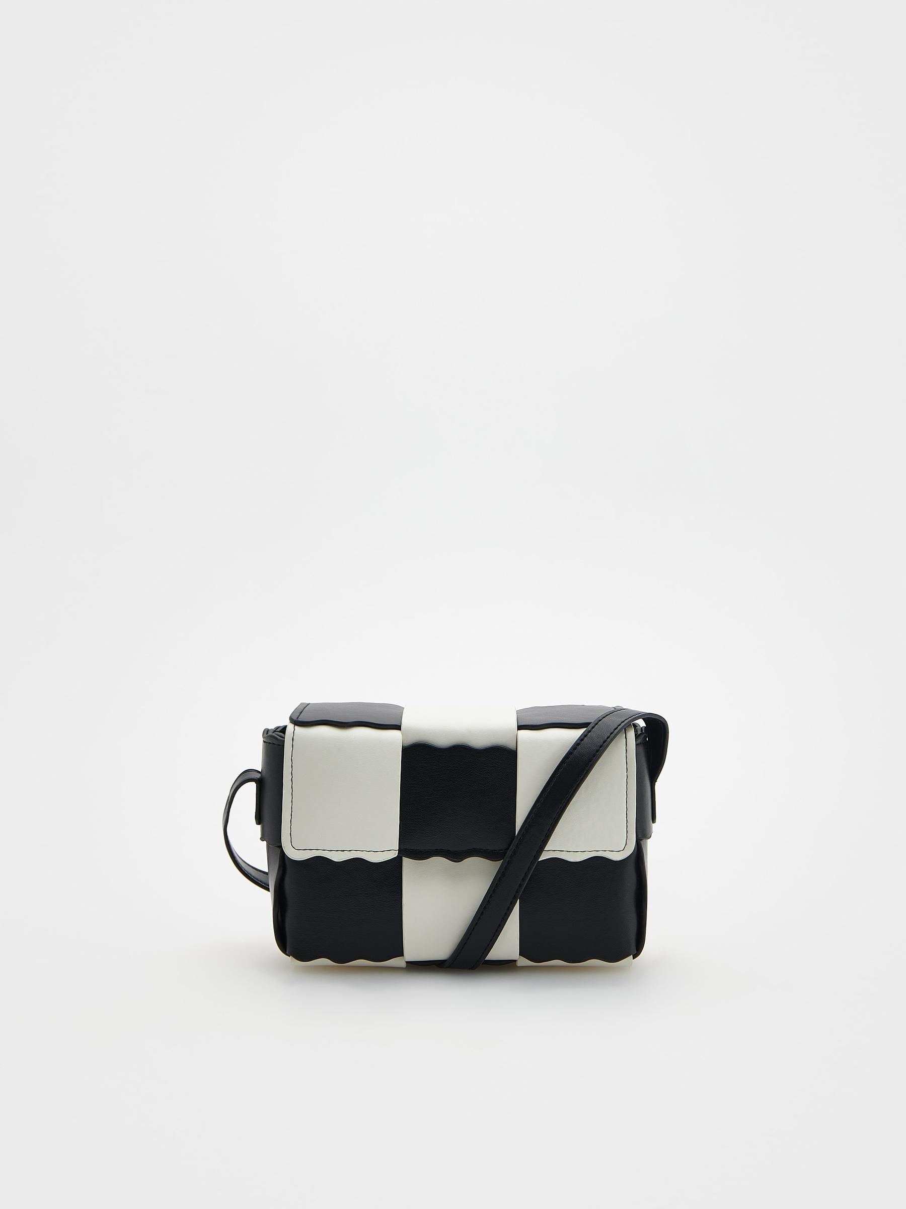 СУМКА ЗІМАТНИКА ШКІРИ, БІЛА, ЧОРНА, ДОВГИЙ ЧОРНИЙ РЕМІНЕЦЬ, ОДИН РОЗМІР