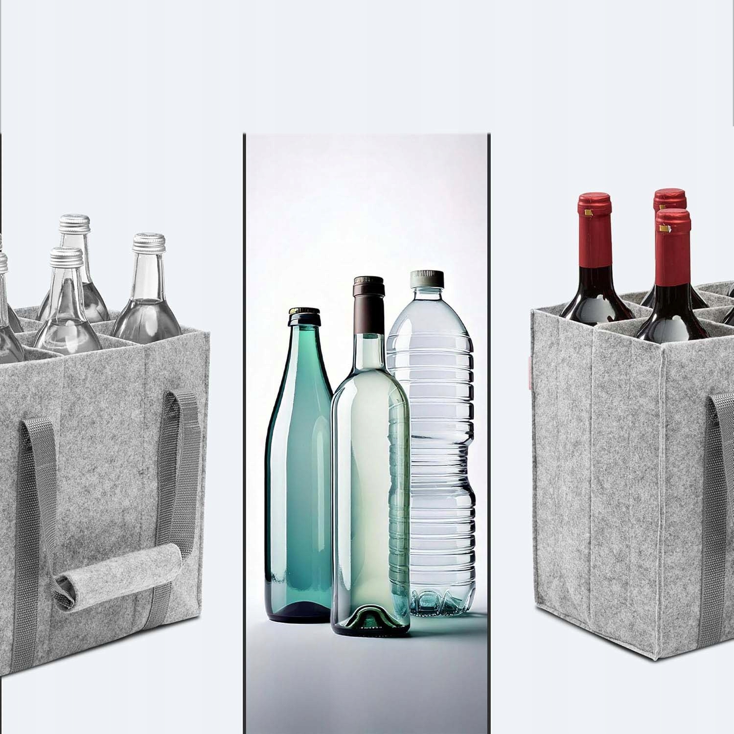 Кошик для пляшок має внутрішні стінки з повсті, що запобігає брязканню пляшок під час руху. Ні брязкоту, ні тріску, просто практично! На відміну від інших поліестерових підставок для пляшок, наша підставка для напоїв виготовлена з високоякісного повсті. Це забезпечує захист під час транспортування скляних пляшок.