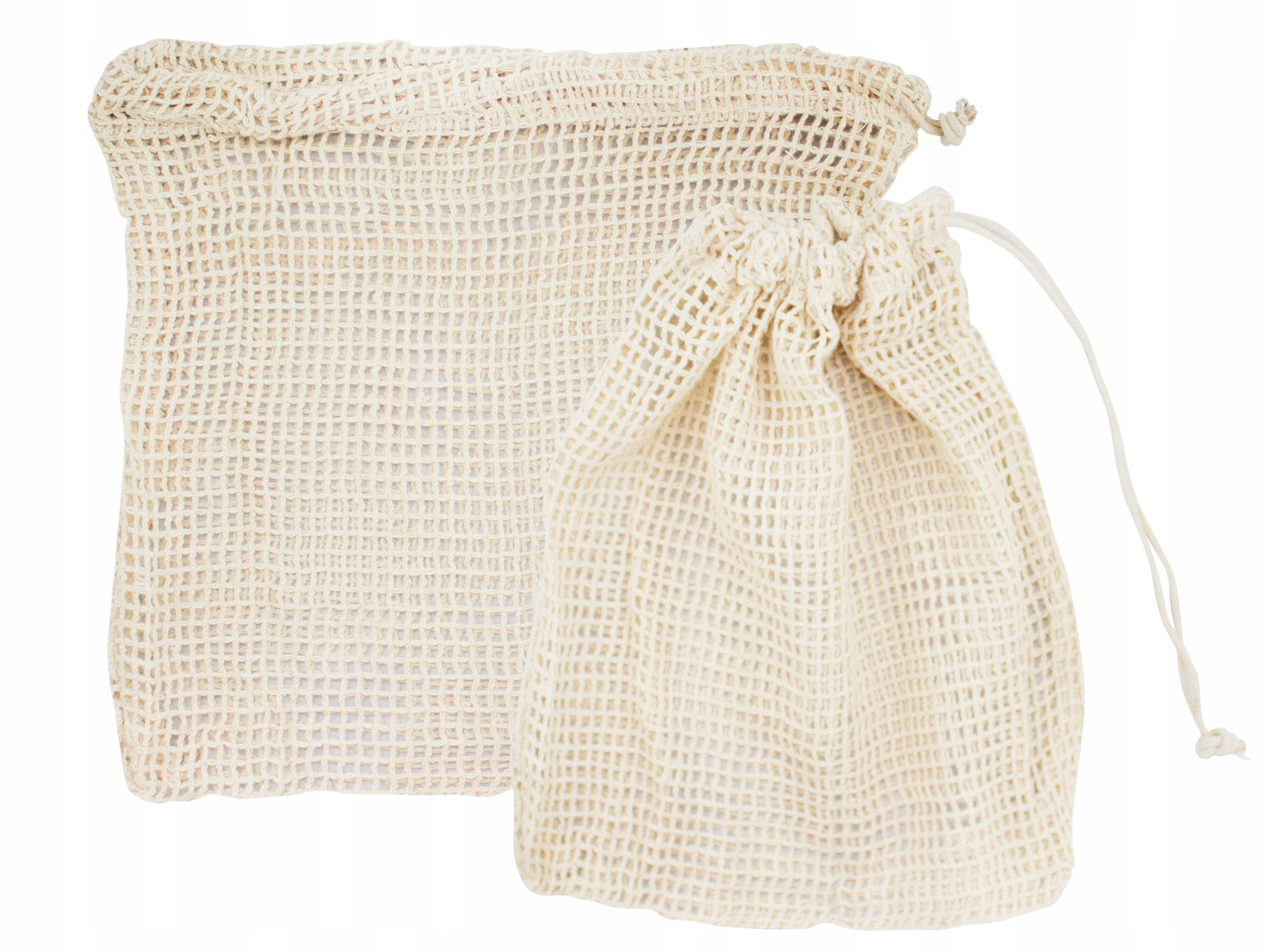 Бавовняні сітчасті пакети є чудовою альтернативою одноразовим пластиковим пакетам. Вони стануть у пригоді під час покупок. Гнучкість матеріалу дозволяє адаптуватися до змісту. Завдяки шнурковому закінченню сумку можна легко переносити після затягування. Виготовлений із бавовняної сітки дозволяє касиру бачити, що всередині, тому немає необхідності перепаковувати продукти.
